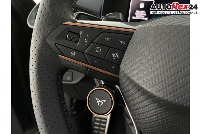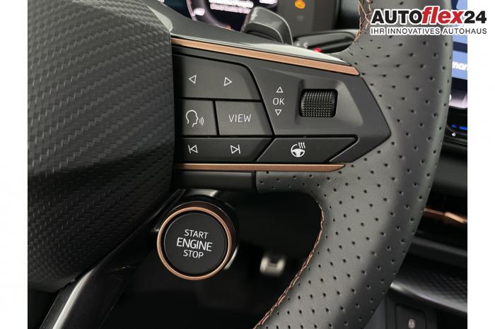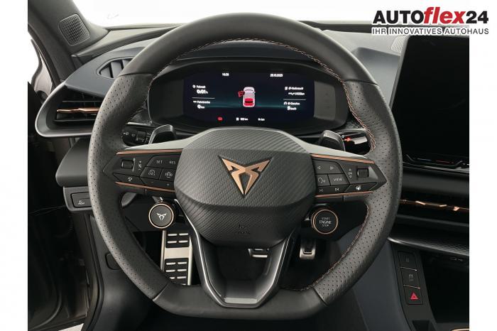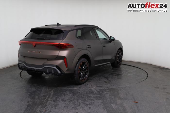 2 USB-C-Schnittstellen vorn und 2 USB-C-Ladebuchsen für die 2. Sitzreihe, 9 Lautsprecher, Connectivity Box mit Wireless Charger, Digitaler Radioempfang DAB , Full Link Wireless für Andorid Auto und Apple CarPlay, Media System Plus mit 12,9 Farb-Touch-Screen, Navigationssystem, Sprachsteuerung, 3D LED-Heckleuchten mit dynamischen Blinkleuchten und bleuchtetem CUPRA Logo, HD-Matrix-Scheinwerfer mit Projektionsfunktion und Welcome Ceremony, LED-Nebelscheinwerfer mit Abbiegelicht-Funktion, Smart Ambiente Light, Tagfahrlicht in LED-Technologie, Türeinstiegsleisten beleuchtet, vorne, Welcome Light, Fensterheber vorn und hinten elektrisch, mit Einklemmschutz und One-Touch-Funktion, Seitenscheiben ab 2. Sitzreihe und Heckscheibe dunkel getönt, Dachhimmel in Schwarz, Innenspiegel automatisch abblendend, Lenkrad beheizbar, Mittelarmlehne hinten, Mittelarmlehne vorn, Multifunktionslenkrad in Leder mit Schaltwippen, Sportpedalerie in Aluminiumoptik, Variabler Gepäckraumboden, Klimaanlage Climatronic mit 3-Zonen-Temperaturregelung, Digital Drive Paket, Edge Paket, 20 Leichtmetallräder Vortex Copper, glanzgedreht [Z0C] , Performance-Reifen 255/40 R20, Airbag für Fahrer und Beifahrer, mit Beifahrerairbag-Deaktivierung, Diebstahl-Warnanlage inkl. Innenraumüberwachung, Back-up-Horn und Abschleppschutz, Elektronisches Stabilisierungsprogramm und elektromechanischer Bremskraftverstärker, ISOFIX-Kindersitz-Sicherungssystem für den Beifahrersitz und in der 2. Sitzreihe links und rechts inkl. Top Thether Verankerungspunkte, Kopfairbag-System vorn und hinten, Seitenairbags vorn, Center Airbag, Notruf-Service, Wegfahrsperre, elektronisch, Lendenwirbelstütze für Fahrer und Beifahrer, Rücksitzlehne asymmetrisch geteilt umklappbar, Sportsitze vorn, Vordersitze beheizbar, Vordersitze mit Höheneinstellung, Anschlussgarantie 3 Jahre/ 100.000 km, CUPRA CONNECT Plus (3 Jahre), Ablenkungs- und Müdigkeitserkennung, Automatische Distanzregelung ACC, Berganfahrassistent, CUPRA Drive Profile, Einparkhilfe vorne und hinten, Elektronische Parkbremse inkl. Auto-Hold-Funktion, Head-up Display, Kreuzungsassistent, Notbremsassistent Front Assist mit Fußgänger- und Radfahrererkennung, Progressivlenkung, Rückfahrkamera, Schlüsselloses Schließ- und Startsystem Kessy, Spurhalteassistent, Umstellung Infotainment / Bordcomputer auf DE, Verkehrszeichenerkennung, Volldigitales Kombiinstrument mit 10,25 TFT Display, Adaptive Fahrwerksregelung DCC, Anhängevorrichtung, schwenkbar mit elektrischer Entriegelung, Außenspiegel elektrisch einstell-, anklapp- und beheizbar mit Memory-Funktion, Dachreling in Schwarz, Heckklappe elektrisch betätigt (Öffnung & Schließung) inkl. Sensorgesteuerter Öffnung & Schließung (Virtual Pedal), EU-Fahrzeug mit Tageszulassung