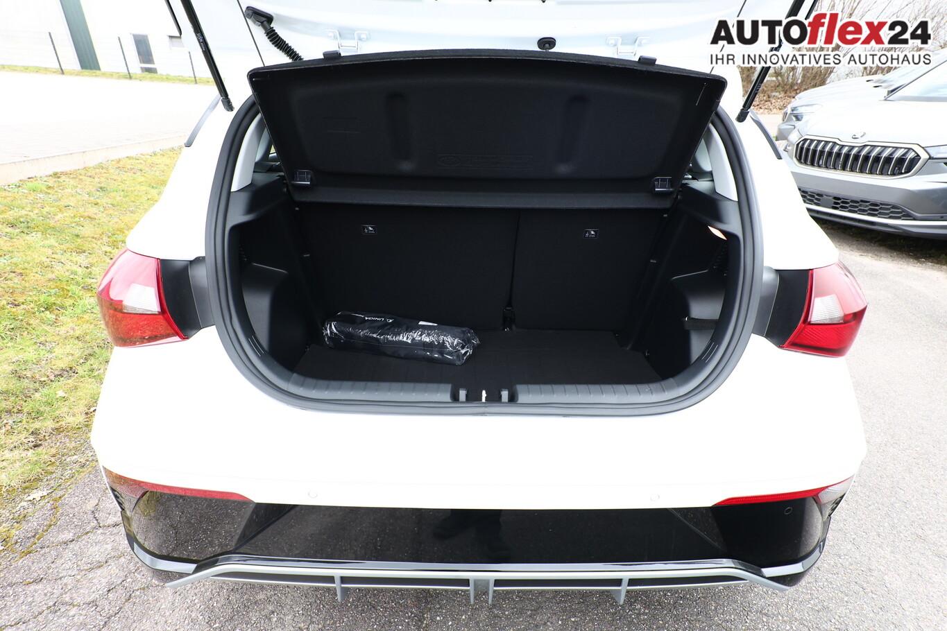 4 Lautsprecher inkl. Hochtöner, Innenspiegel abblendbar, Isofix-Aufnahmen für Kindersitz, Kopfstützen vorn verstellbar, Lenkrad mit Multifunktion, Reifen 185/65 R15, Schadstoffarm nach Abgasnorm Euro 6e (EU6 EA), SmartLink (Apple CarPlay und Android Auto), Stahlfelgen 15 Zoll, Audio-Navigationssystem (Touchscreen-Farbdisplay (10,25 Zoll)), Service-System: Remote Services (Blue Link) (Service-System: Online Update OTA (Over The Air)), Fahrassistenz-System: Autonome Notbremsfunktion inkl. Frontkollisionswarnung (FCA) (Fahrassistenz-System: Autonome Notbremsfunktion inkl. Fahrradfahrererkennung (FCA-Cyc.) / Fahrassistenz-System: Autonome Notbremsfunktion inkl. Fußgängererkennung (FCA-Ped.)), Außenspiegel lackiert, Fahrassistenz-System: Insassenalarm (ROA), Fahrassistenz-System: Multikollisionsbremse (Multi Collision Brake), Heckscheibe heizbar, Karosserie: 5-türig, Kopfstützen hinten verstellbar, Lenksäule (Lenkrad) höhenverstellbar, Lenksäule (Lenkrad) längsverstellbar, Motor 1,0 Ltr. - 74 kW TGDI KAT, Otto-Partikelfilter (OPF), Radioempfang digital (DAB+), Sitz vorn links höhenverstellbar, Sitzbezug / Polsterung: Stoff, Steckdose (12V-Anschluß) vorn, Türgriffe außen Wagenfarbe, Freisprecheinrichtung Bluetooth, USB-Anschluss (Typ C), USB-Anschluss Mittelkonsole, Anti-Blockier-System (ABS), Elektron. Stabilitätskontrolle (ESC) mit Bremsassistent, Wegfahrsperre (elektronisch), Getriebe 7-Gang - Doppelkupplungsgetriebe DCT, Klimaanlage, Airbag Beifahrerseite, Airbag Beifahrerseite abschaltbar, Airbag Fahrerseite, Fensterheber elektrisch hinten, Fensterheber elektrisch vorn, Kopf-Airbag-System, Rücksitzlehne geteilt/klappbar, Seitenairbag vorn, Zentralverriegelung mit Fernbedienung, Fahrassistenz-System: Berganfahrhilfe, Fahrassistenz-System: Verkehrszeichenerkennung, erweitert (Geschwindigkeits-Regel-/Begrenzeranlage), Geschwindigkeits-Regelanlage (Tempomat), Rückfahrkamera, Fahrassistenz-System: Sicherheitssystem mit automatischem Notruf (ERA GLONASS / eCall), Servolenkung, Außenspiegel elektr. verstell- und heizbar, beide, Einschaltautomatik für Fahrlicht / Lichtsensor, Einparkhilfe hinten, Fahrassistenz-System: aktiver Spurhalteassistent (LKAS, Lane Keep Assist System), Reifendruck-Kontrollsystem, Alarmanlage, Start/Stop-Anlage