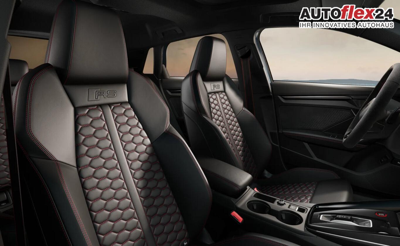 Infotainment-Paket (Audi Application Store und Smartphone Interface / Audi connect (Internetbasierende Dienste) / Kombiinstrument digital (virtual cockpit plus) mit RS-Design / Sound-System DSP / Audi Sound-System / Multi-Media-Interface MMI Navigation Plus mit MMI Touch), Komfort-Paket pro (Innenspiegel mit Abblendautomatik / Sitze vorn elektr. verstellbar (links mit Memory) / Außenspiegel elektr. verstell-, heiz- und anklappbar, mit Abblendautomatik und Memory / Außenspiegel mit Bordsteinautomatik, rechts), Assistenz-Paket Fahren und Parken erweitert mit Assistent-Paket Schutz- und Warnsysteme plus (Fahrassistenz-System: Ausstiegswarnung / Fahrassistenz-System: Bremsassistent (Audi pre sense front) / Fahrassistenz-System: Adaptive Geschwindigkeitsregelanlage (Adaptive Cruise Control) mit Autom. Distanzregelung / Rückfahrkamera / Einparkhilfe vorn und hinten, akustisch und optisch mit selektiver Anzeige (APS Plus) / Fahrassistenz-System: Parklenkassistent / Fahrassistenz-System: Abbiege-Assistent links / Fahrassistenz-System: Ausweich-Assistent / Fahrassistenz-System: Insassen-Schutzsystem (Audi pre sense basic) / Fahrassistenz-System: Querverkehrs-Assistent Heck / Fahrassistenz-System: Spurwechselassistent (Side Assist) / Fahrassistenz-System: Spurwechselassistent (Side Assist) mit Ausstiegswarnung und Querverkehrs-Assistent), Panorama-Ausstelldach elektrisch, Sport-Auspuffanlage, Sitzbezug / Polsterung: Leder Feinnappa, Wabensteppung mit Logo-Prägung in Vordersitzlehnen, Klima-Paket plus (Komfort-Klimaautomatik 3-Zonen / Sitzheizung vorn), Design-Paket: RS rot (Fußmatten Audi exclusive mit Schriftzug und Kontrastnaht / Lenkradkranz Audi exclusive Alcantara mit 12-Uhr-Markierung (Zusatz-AV zum Lenkrad) / Lenkrad (Sport/Leder - 3-Speichen, oben / unten abgeflacht) mit Multifunktion und Schaltfunktion), Matrix-LED-Scheinwerfer (Scheinwerfer abgedunkelt / Heckleuchten LED mit dynamischem Blinklicht / Scheinwerfer-Reinigungsanlage (SRA)), Sound-System Sonos Premium, Gepäckraumklappe elektr. betätigt (öffnen + schliessen), Innenausstattung: Dekoreinlagen Mikrofaser Dinamica, schwarz, Verglasung hinten abgedunkelt (Privacyverglasung), Bremssättel Rot lackiert, Bluetooth-Freisprecheinrichtung mit Spracherkennung (Audi Phone Box) (Universal-Schnittstelle Bluetooth), Sitzbelegungserkennung für Sicherheitsgurte, Frontscheibe Wärmeschutzverglasung, Dachkantenspoiler S-Line, Heckscheibenwischer mit Intervallfunktion, Kopfstütze vorn, Lendenwirbelstütze vorn, elektr. verstellbar, LM-Felgen vorn/hinten: 9x19 7 8x19 (5-Y-Speichen, schwarz matt), Reifen hinten 245/35 R19, Reifen vorn 265/30 R19, Sicherheitsgurte in Schwarz mit grünem Rand, Sitze mit rotem Stiching, Vorbereitung für Functions on Demand, Ablage- und Gepäckraum-Paket (Gepäcksicherungsnetz / Steckdose (12V-Anschluß) im Koffer-/Laderaum / Steckdose (12V-Anschluß) in Mittelkonsole vorn), Audi connect (Remote / Control), Außenspiegel schwarz, Blinkleuchten LED in Außenspiegel integriert, Dachhimmel Stoff, schwarz, Einstiegsleisten mit Aluminiumeinlage und Schriftzug, beleuchtet, Einstiegsleuchten LED mit Projektionsfunktion, Geschwindigkeits-Begrenzeranlage, Innenausstattung: Vanadium-Optik, Karosserie: 5-türig, Kindersicherung elektr. betätigt, Kontur / Ambientebeleuchtungs-Paket (pro), Kopfstützen hinten (3-fach), Motor 2,5 Ltr. - 294 kW 20V TFSI, Nichtraucher-Paket, Optik-Paket schwarz plus, Parkbremse elektro-mechanisch, Pedalerie in Edelstahl, Radioempfang digital (DAB), RS Exterieur-Paket Schwarz matt, RS-Frontstoßfänger Sport-Design, Steckdose (12V-Anschluß) im Fond (Mittelkonsole), USB-Schnittstelle für Fondpassagiere, Anti-Blockier-System (ABS), Antriebsart: Allradantrieb, Audi Drive Select, Elektron. Stabilitäts-Programm (ESP), Sport-Fahrwerk S / RS spezifisch, Wegfahrsperre (elektronisch), Getriebe 7-Gang - Doppelkupplungsgetriebe S-tronic, Airbag Beifahrerseite abschaltbar, Airbag Fahrer-/Beifahrerseite, Isofix-Aufnahmen für Kindersitz, Kopf-Airbag-System (Sideguard), Mittelarmlehne vorn, RS-Sportsitze vorn, Rücksitzlehne geteilt/klappbar (40:20:40), Schließ-/Startsystem Advanced Key (Komfortschlüssel), Seitenairbag vorn, Zentralverriegelung mit Fernbedienung, Fahrassistenz-System: Verkehrszeichenerkennung, Audi connect (Notruf- und Assistance-System), Fahrassistenz-System: Notfall-Assistent mit automatischem Notruf, Progressivlenkung, Licht- und Regensensor, Tagfahrlicht LED, Fahrassistenz-System: Ablenkungs- und Müdigkeitserkennung, Fahrassistenz-System: Spurverlassenswarnung inkl. Notfall-Assistent, Reifenkontroll-Anzeige, Start/Stop-Anlage