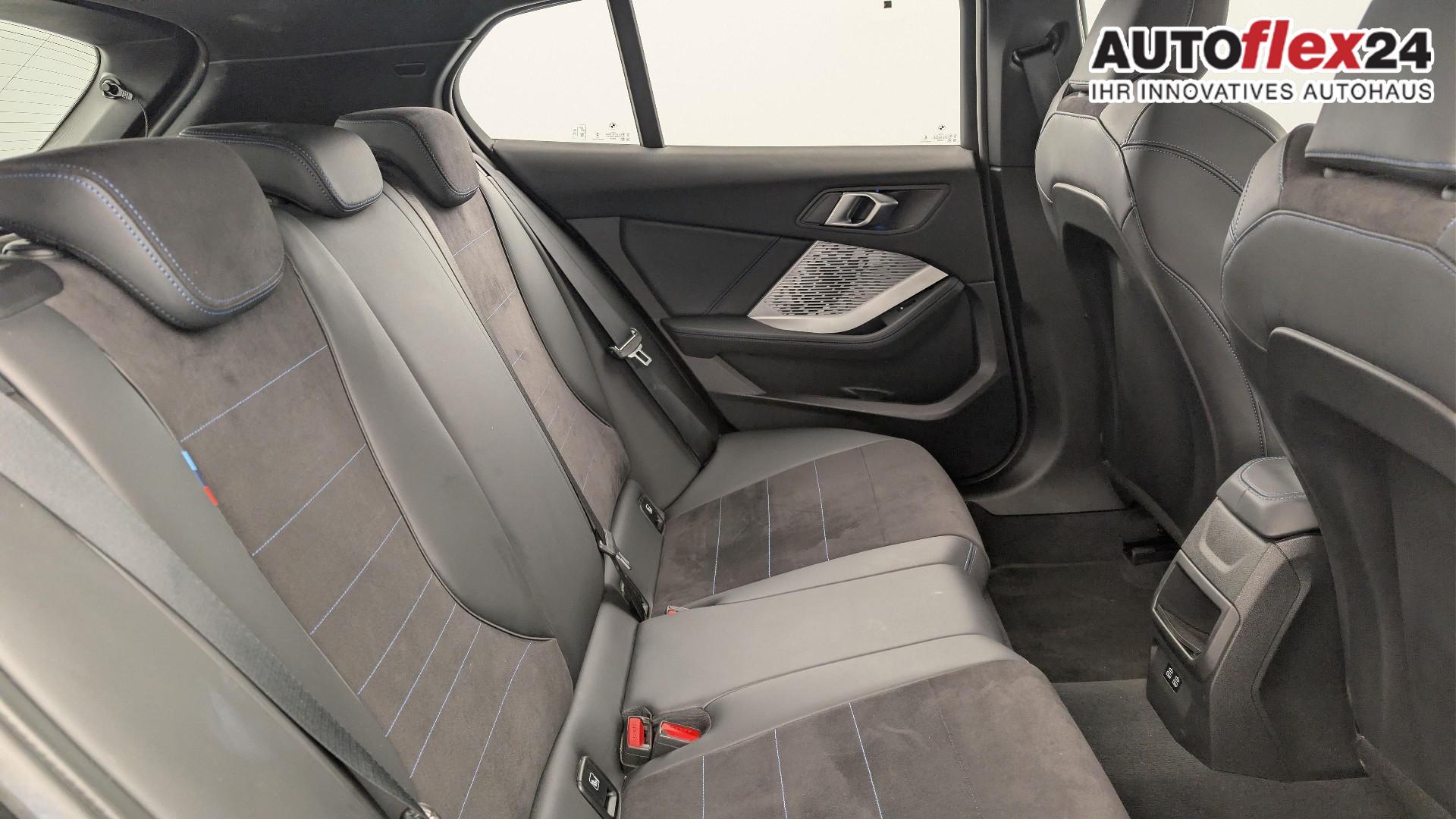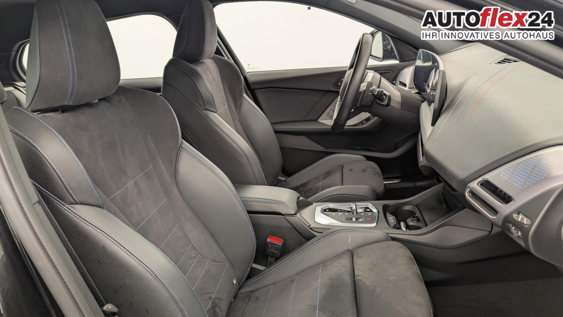 • Polsterung Alcantara / Kunstleder Veganza Schwarz mit blauen Nahten