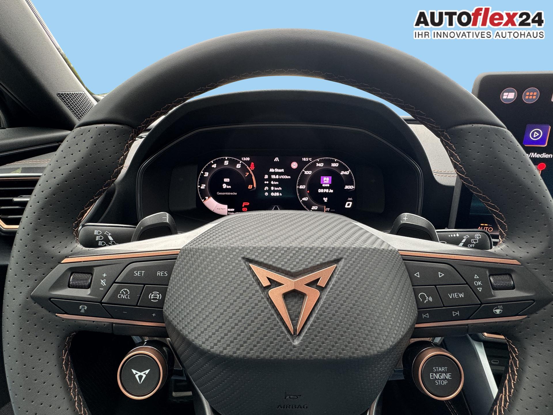 • Multifunktionslederlenkrad, Sportlenkrad, beheizbar, mit Schaltwippen und Cupra Mode Selector vorhanden