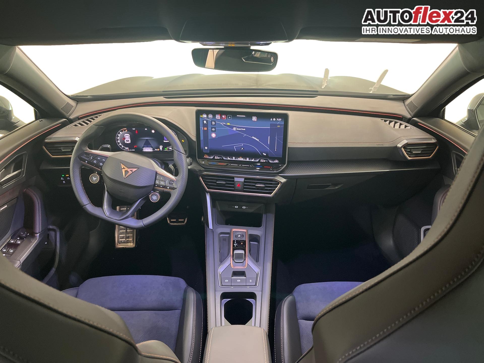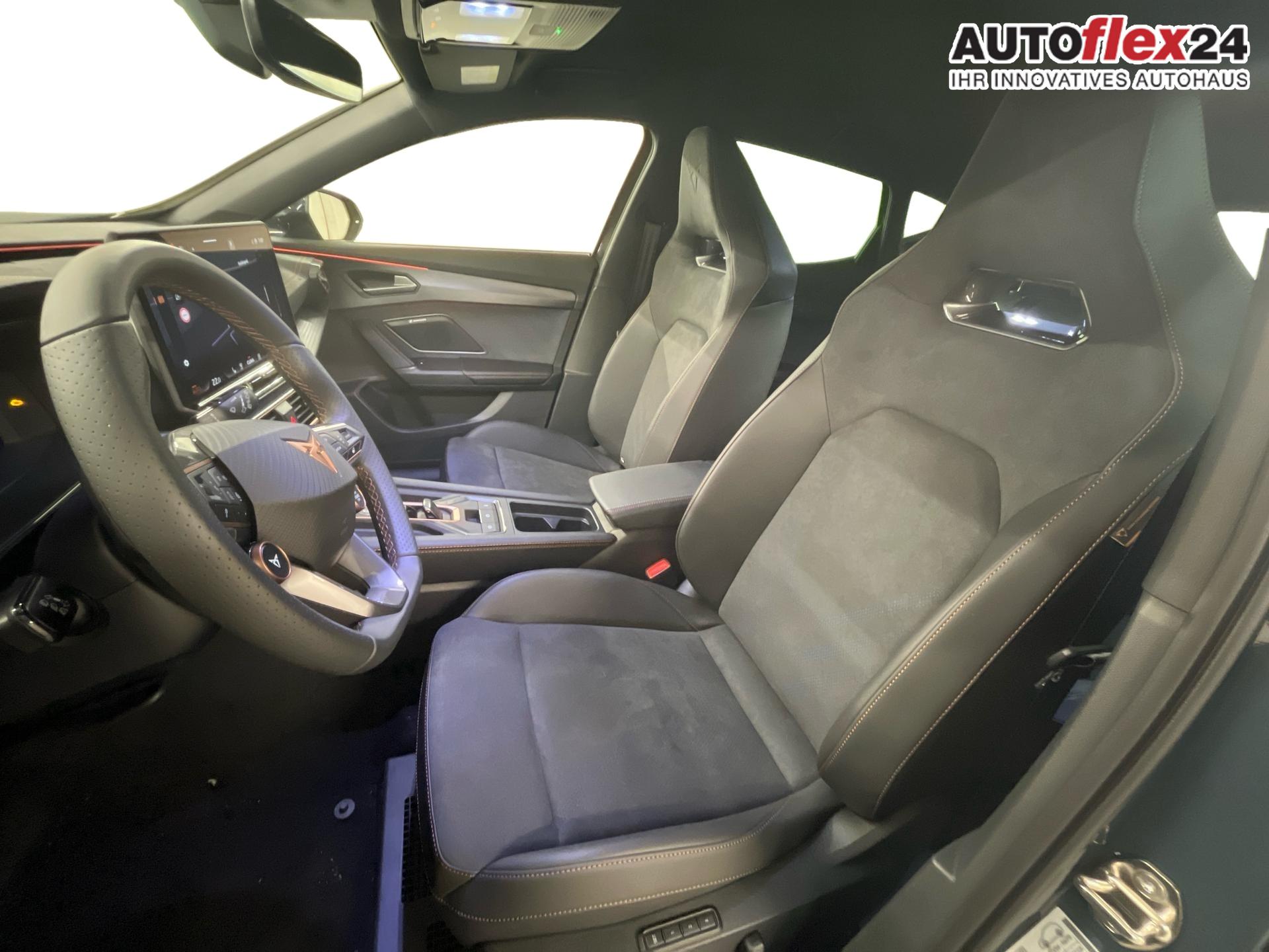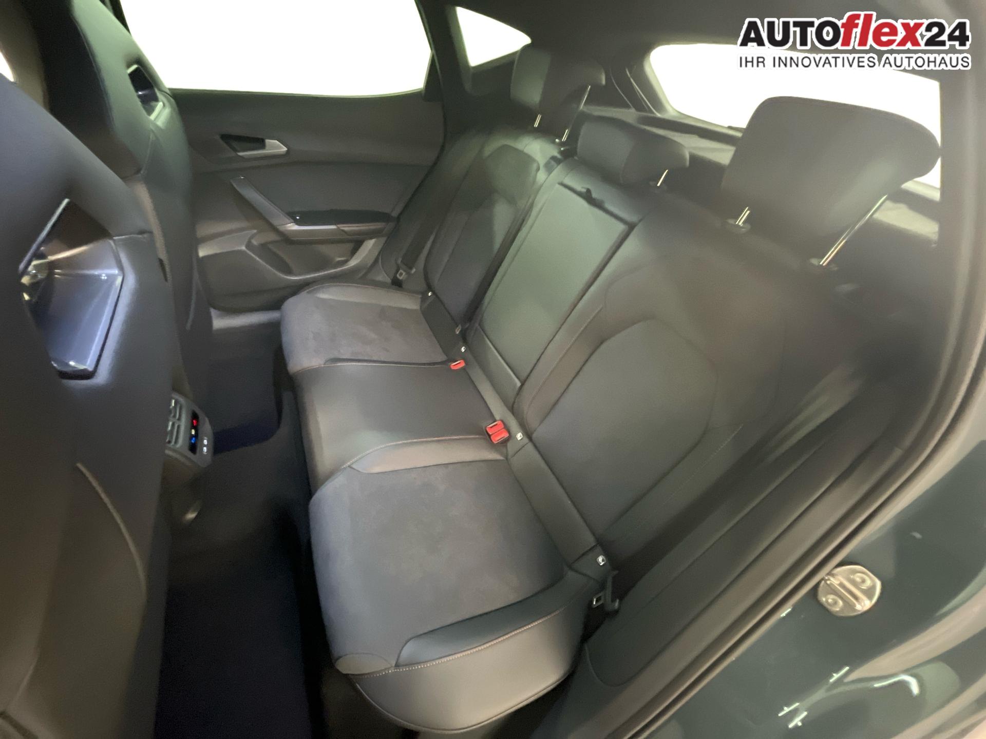 Innenausstattung CUPRA Sportschalensitze vorne mit Sitzmittelbahn in Dinamica, Schwarz mit Blau Akzenten
