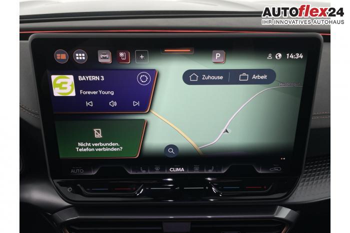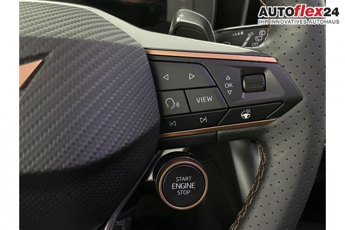 Connectivity Box inkl. Wireless Charger, Cupra Full Link, DAB (Digital Audio Broadcasting), Navigationssystem, Tuner/Radio, LED Matrix Scheinwerfer, Seitenscheiben hinten und Heckscheibe abgedunkelt, Lederlenkrad, Lenkradheizung, Multifunktionslenkrad, variabler Ladeboden, 3 Klimazonen, Klimaautomatik, Winterpaket, 19'' Leichtmetallfelgen ''Sandstorm'', Pre-Crash-Assist, ABS (Antiblockiersystem), ESP (Elektronisches Stabilitätsprogramm), Fahrerairbag, Vorder- und Seitenairbags, Vordere Airbags, Elektrisch verstellbarer Fahrersitz mit Memory, Fahrersitz höhenverstellbar, Schalensitze vorne, Sitzheizung vorne, Herstellergarantie 5 Jahre/100.000 km, 360-Grad-Kamera, Automatische Distanzregelung ACC, Digital Cockpit, Elektrische Heckklappe inkl. Virtual Pedal, Exit Assist , Fernlichtassistent, IntelligentPark-Assistent, Keyless Go, KeylessEntry, Müdigkeitserkennung, Notbremsassistent, Parkpilot vorne und hinten, Spurhalteassistent plus, Stauassistent, Totwinkelassistent, Verkehrszeichenerkennung, Zentralverriegelung, Adaptive Fahrwerksregelung DCC, Anhängekupplung schwenkbar, Außenspiegel elektrisch anklappbar, Außenspiegel elektrisch beheizbar, Außenspiegel elektrisch einstellbar, Dachreling schwarz, EU-Fahrzeug mit Tageszulassung