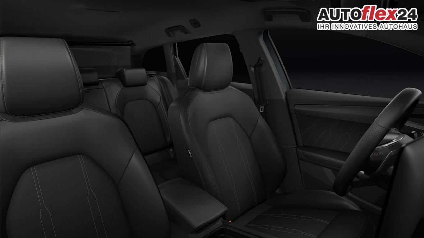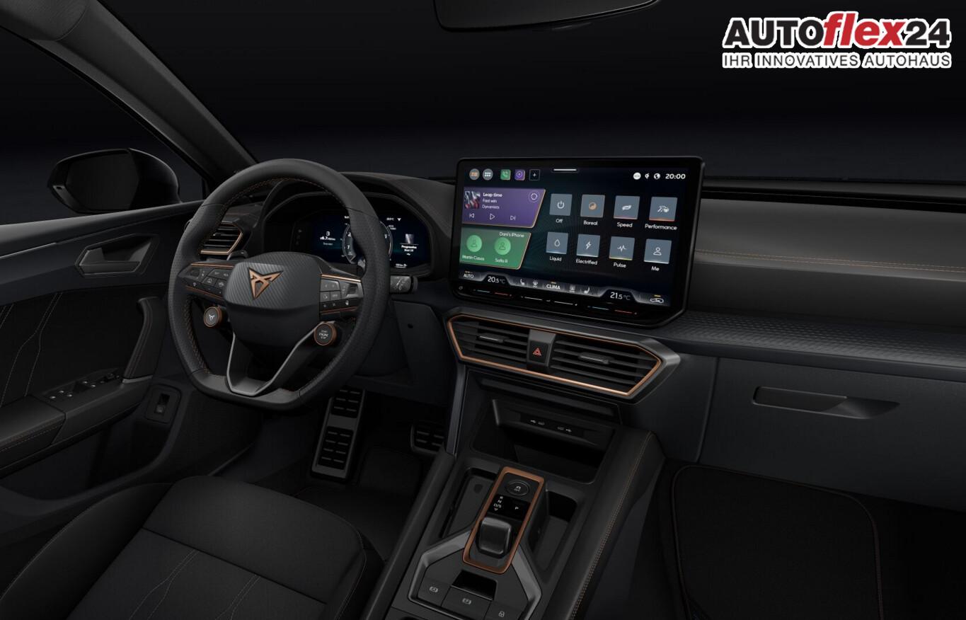 Edge-Paket (Ambiente-Beleuchtung LED / Ambiente-Beleuchtung Smart Ambient Light / Schließ-/Startsystem Kessy Advanced / Heckklappe/-Deckel elektr. betätigt (öffnen + schliessen, sensorgesteuert) / Rückfahrkamera / Diebstahl-Warnanlage mit Innenraumüberwachung und Abschleppschutz), Winter-Paket (Sitzheizung vorn), Anhängerkupplung Vorbereitung, Anti-Blockier-System (ABS), Bluetooth-Freisprecheinrichtung inkl. Sprachsteuerung, Bordcomputer, Elektr. Stabilitätsprogramm (ESP), Heckleuchten Voll-LED mit dynamischem Lichtband (Infinite Light), LM-Felgen 18 Zoll (Garbi), Navigation in Verbindung mit dem Smartphone (über Apple Carplay / Android Auto /...), Otto-Partikelfilter, Pedale Aluminium-Design, Scheinwerfer Voll-LED, Sommerreifen 225/40 R18, Zentralverriegelung, Licht- und Sicht-Paket (Innenspiegel mit Abblendautomatik / Einschaltautomatik für Fahrlicht / Licht- und Regensensor / Lichtassistent (Coming Home, Leaving Home)), Media-System Plus (Audiosystem mit 12,9" Touchscreen-Farbdisplay), Abdeckkappen Außenspiegel Dark Aluminium, Connectivity-Box, Dachhimmel schwarz, Einstiegsleisten vorn beleuchtet, Fensterzierleisten schwarz hochglänzend, Gepäck-/Laderaumboden doppelt, Gepäckraum-Abtrennung (Netz), Gepäckraumbeleuchtung (LED), Karosserie: 5-türig, Kombiinstrument digital (virtual cockpit), Lendenwirbelstütze Sitz vorn links, verstellbar, Lendenwirbelstütze Sitz vorn rechts, verstellbar, Leseleuchten hinten LED, Leseleuchten vorn LED, Motor 2,0 Ltr. - 150 kW 16V TSI, Radioempfang digital (DAB+), Sitz vorn links höhenverstellbar, Sitz vorn rechts höhenverstellbar, Sitzbezug / Polsterung: Stoff/Kunstleder schwarz (Sharp Textil), Sonnenblende links mit Spiegel (beleuchtet), Sonnenblende rechts mit Spiegel (beleuchtet), Warnanlage für Sicherheitsgurt-System, Full Link (MirrorLink, Apple CarPlay und Android Auto), USB-Ladeanschlüsse (2-fach, Typ C) für 2.Sitzreihe, USB-Schnittstelle vorn (2-fach, Typ C), Getriebe 7-Gang - Doppelkupplungsgetriebe DSG, Klimaanlage Climatronic 3-Zonen, Airbag Beifahrerseite abschaltbar, Airbag Fahrer-/Beifahrerseite, Fensterheber elektrisch vorn + hinten mit Komfortschaltung, Isofix-Aufnahmen für Kindersitz an Beifahrersitz und Rücksitz (inkl. i-Size-Kindersitze), Mittelarmlehne vorn, Seitenscheiben ab 2.Sitzreihe und Heckscheibe dunkel getönt (Privacy Glass), Sportsitze vorn, Fahrassistenz-System: Fahrprofilauswahl (CUPRA Drive Profile), Dachreling schwarz, hochglänzend, Wärmeschutzverglasung, Fahrassistenz-System: Automatische Distanzregelung (ACC), Notrufsystem, Lenkrad heizbar (CUPRA Supersport, Leder) mit Multifunktion und Schaltfunktion, Progressivlenkung, Außenspiegel elektr. verstell-, heiz- und anklappbar mit Spiegelabsenkung und Welcome Light, Einparkhilfe vorn und hinten, Fahrassistenz-System: Müdigkeitserkennung, Fahrassistenz-System: Spurhalteassistent, Fahrassistenz-System: Umfeldbeobachtungssystem (Front assist) mit City-Notbremsfunktion, Reifenkontroll-Anzeige