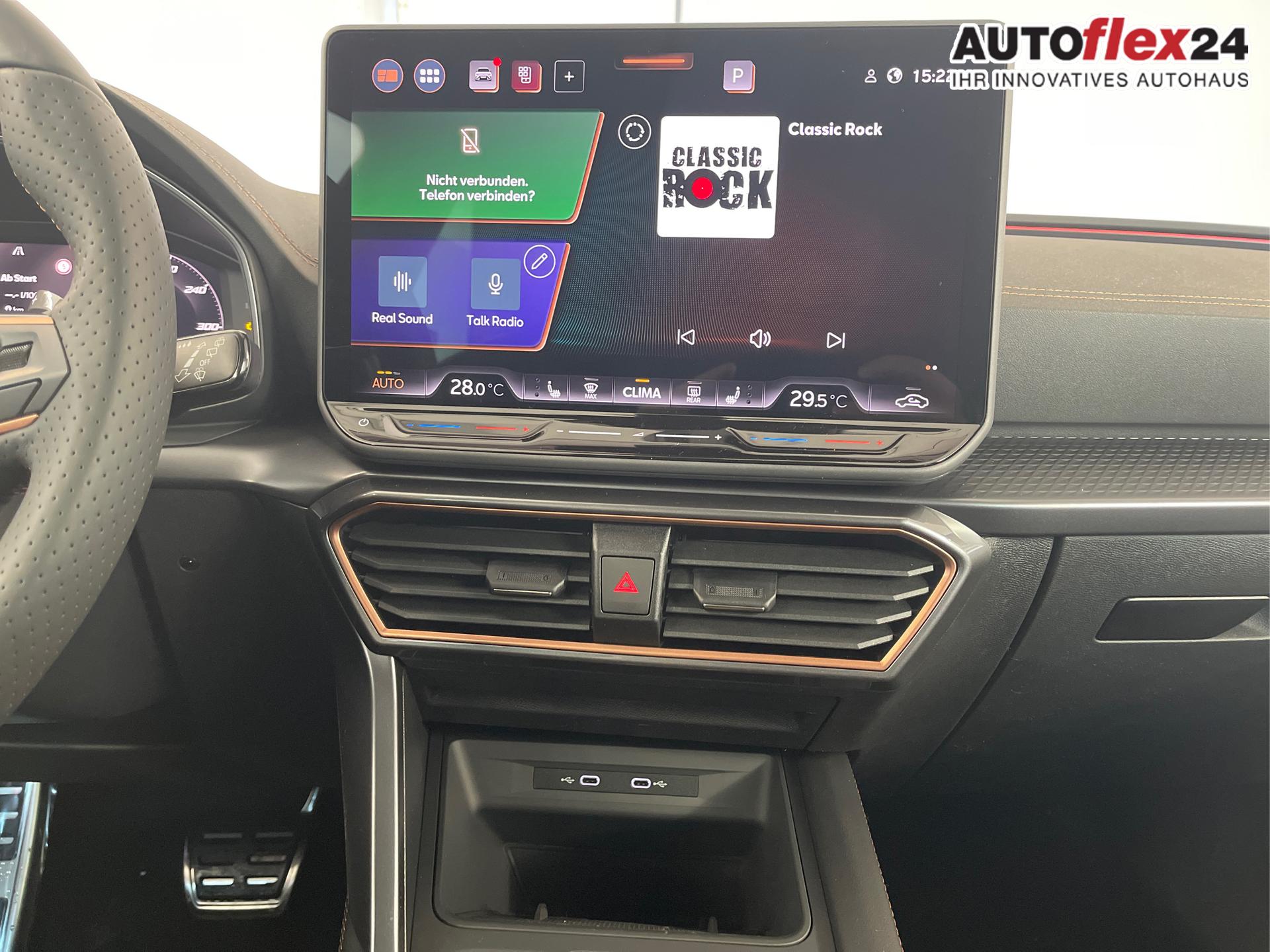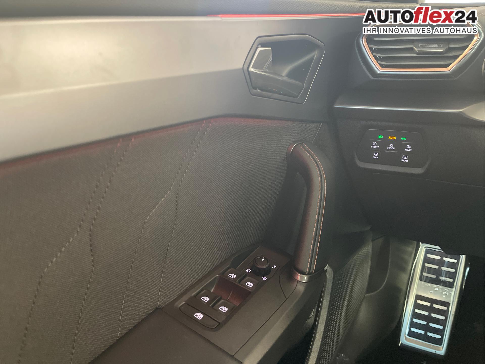 • 18 Zoll Leichtmetallräder, Außenspiegel elektrisch einstell- und beheizbar, Dachreling Schwarz, Wärmeschutzverglasung, Pedale in Aluminium, Doppelter Laderaumboden, Laderaumabdeckung, CUPRA Einstiegsleisten vorne mit Beleuchtung, Sportsitze vorn, Vordersitze höhenverstellbar, Lendenwirbelstütze für die Vordersitzlehnen, Dreipunkt-Sicherheitsgurte, 3D-LED-Rückleuchten mit dynamischen Blinker, Sicherheitsinnenspiegel automatisch abblendend, Front-Querverkehrassistent, Voll-LED-Scheinwerfer inkl. LED-Tagfahrlicht, Coming/Leaving Home Funktion, Lichtsensor, Fernlichtassistent "Light Assist", ParkPilot vorn und hinten, Virtual Cockpit 10 Zoll inkl. Bordcomputer, Radio "Infotainment" (Farbdisplay, Touchscreen), USB-C Anschlüsse, Adaptive Geschwindigkeitsregelung ACC mit Follow-to-Stop (Geschwindigkeitsregelanlage inkl. Geschwindigkeitsbegrenzung), Mittelarmlehne vorn, Klimaautomatik 3-Zonen-Climatronic, Connectivity-Box (Freisprecheinrichtung Bluetooth), Wireless App-Connect, Fahrprofilauswahl, Gepäckraumbeleuchtung, Leseleuchten vorn und hinten, Wärmeschutzverglasung, Servolenkung, Regensensor, Make-up-Spiegel in den Sonnenblenden, Sprachbedienung, Wegfahrsperre, Zentralverriegelung mit Funkfernbedienung, Front Assist inkl. City-Notbremsfunktion, Notrufsystem eCall, Verkehrszeichenerkennung, Airbag für Fahrer und Beifahrer, Beifahrerairbag-Deaktivierung, Seitenairbag vorn, Kopfairbags vorn, Center-Airbag, Fensterheber vorn und hinten elektrisch, Digitaler Radioempfang DAB, Müdigkeitserkennung, Aufmerksamkeitserkennung, ESC, ABS, ASR, XDS, Spurhalteassistent "Lane Assist", Reifendruckkontrolle, Tire-Mobility-Set, Fußgängererkennung, Radfahrererkennung, Start-Stopp-Anlage, Scheiben ab der B-Säule abgedunkelt