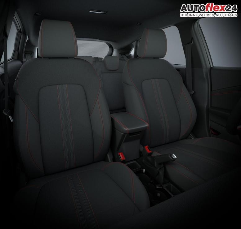 • Schwarzer Stoffbezug mit roter Naht