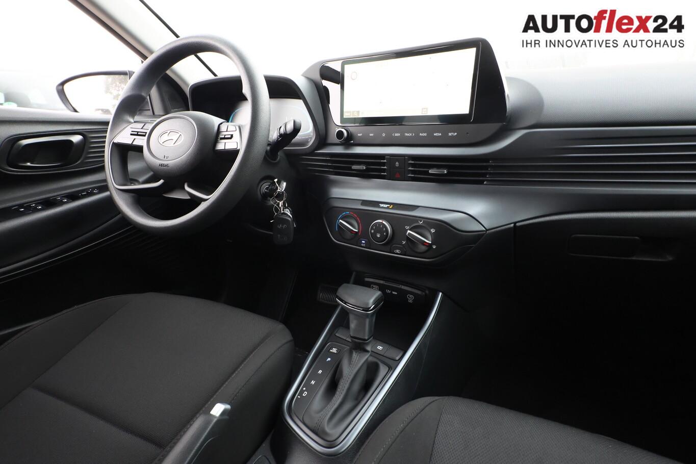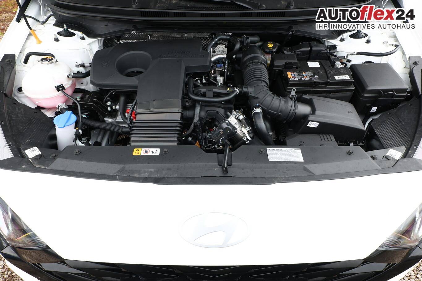 4 Lautsprecher inkl. Hochtöner, Innenspiegel abblendbar, Isofix-Aufnahmen für Kindersitz, Kopfstützen vorn verstellbar, Lenkrad mit Multifunktion, Reifen 185/65 R15, Schadstoffarm nach Abgasnorm Euro 6e (EU6 EA), SmartLink (Apple CarPlay und Android Auto), Stahlfelgen 15 Zoll, Audio-Navigationssystem (Touchscreen-Farbdisplay (10,25 Zoll)), Service-System: Remote Services (Blue Link) (Service-System: Online Update OTA (Over The Air)), Fahrassistenz-System: Autonome Notbremsfunktion inkl. Frontkollisionswarnung (FCA) (Fahrassistenz-System: Autonome Notbremsfunktion inkl. Fahrradfahrererkennung (FCA-Cyc.) / Fahrassistenz-System: Autonome Notbremsfunktion inkl. Fußgängererkennung (FCA-Ped.)), Außenspiegel lackiert, Fahrassistenz-System: Insassenalarm (ROA), Fahrassistenz-System: Multikollisionsbremse (Multi Collision Brake), Heckscheibe heizbar, Karosserie: 5-türig, Kopfstützen hinten verstellbar, Lenksäule (Lenkrad) höhenverstellbar, Lenksäule (Lenkrad) längsverstellbar, Motor 1,0 Ltr. - 74 kW TGDI KAT, Otto-Partikelfilter (OPF), Radioempfang digital (DAB+), Sitz vorn links höhenverstellbar, Sitzbezug / Polsterung: Stoff, Steckdose (12V-Anschluß) vorn, Türgriffe außen Wagenfarbe, Freisprecheinrichtung Bluetooth, USB-Anschluss (Typ C), USB-Anschluss Mittelkonsole, Anti-Blockier-System (ABS), Elektron. Stabilitätskontrolle (ESC) mit Bremsassistent, Wegfahrsperre (elektronisch), Getriebe 7-Gang - Doppelkupplungsgetriebe DCT, Klimaanlage, Airbag Beifahrerseite, Airbag Beifahrerseite abschaltbar, Airbag Fahrerseite, Fensterheber elektrisch hinten, Fensterheber elektrisch vorn, Kopf-Airbag-System, Rücksitzlehne geteilt/klappbar, Seitenairbag vorn, Zentralverriegelung mit Fernbedienung, Fahrassistenz-System: Berganfahrhilfe, Fahrassistenz-System: Verkehrszeichenerkennung, erweitert (Geschwindigkeits-Regel-/Begrenzeranlage), Geschwindigkeits-Regelanlage (Tempomat), Rückfahrkamera, Fahrassistenz-System: Sicherheitssystem mit automatischem Notruf (ERA GLONASS / eCall), Servolenkung, Außenspiegel elektr. verstell- und heizbar, beide, Einschaltautomatik für Fahrlicht / Lichtsensor, Einparkhilfe hinten, Fahrassistenz-System: aktiver Spurhalteassistent (LKAS, Lane Keep Assist System), Reifendruck-Kontrollsystem, Alarmanlage, Start/Stop-Anlage