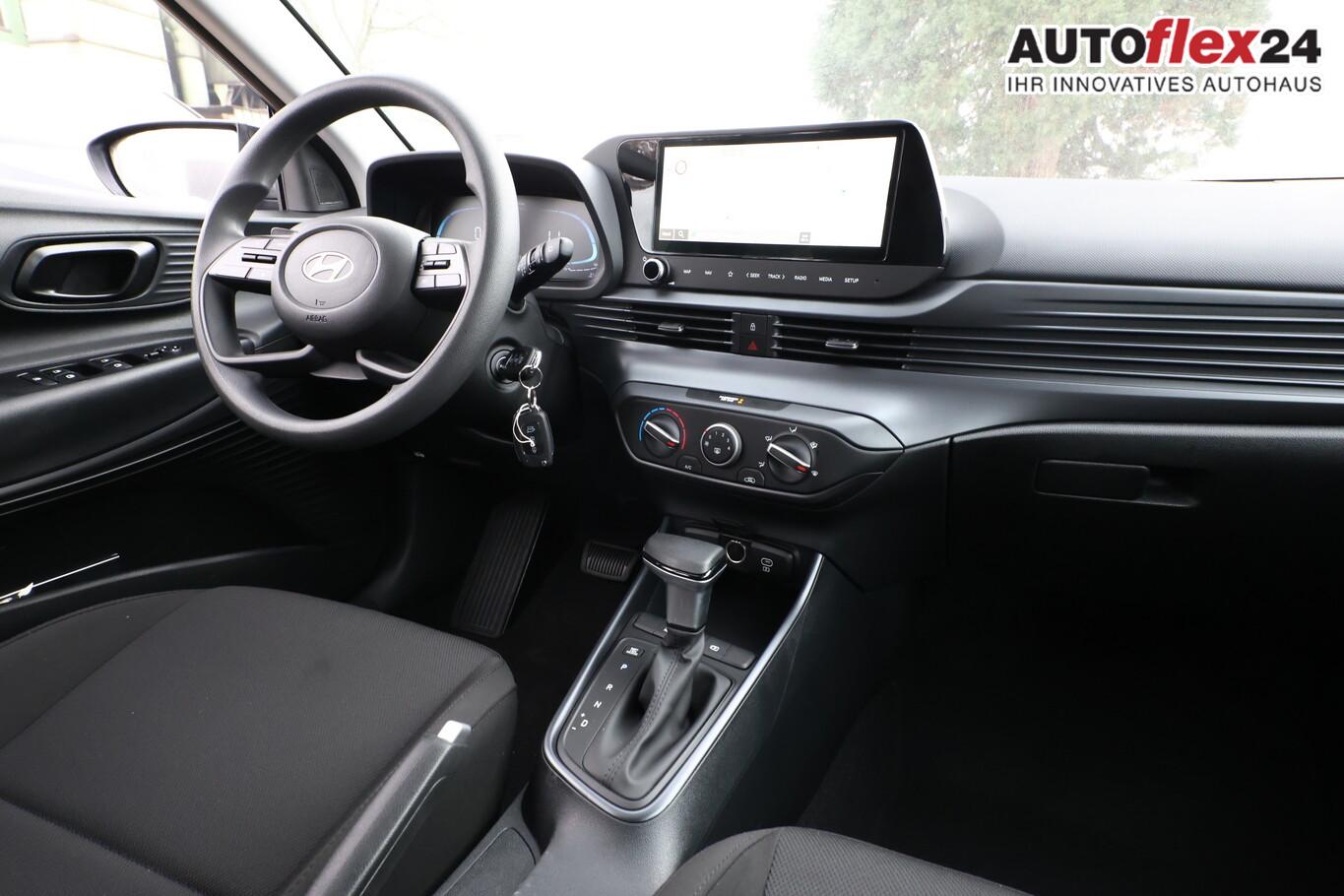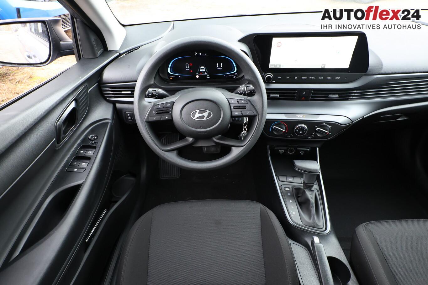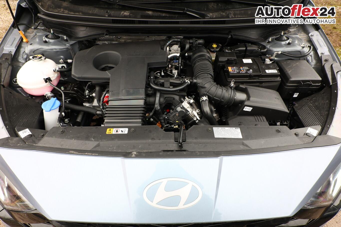 4 Lautsprecher inkl. Hochtöner, Innenspiegel abblendbar, Isofix-Aufnahmen für Kindersitz, Kopfstützen vorn verstellbar, Lenkrad mit Multifunktion, Reifen 185/65 R15, Schadstoffarm nach Abgasnorm Euro 6e (EU6 EA), SmartLink (Apple CarPlay und Android Auto), Stahlfelgen 15 Zoll, Audio-Navigationssystem (Touchscreen-Farbdisplay (10,25 Zoll)), Service-System: Remote Services (Blue Link) (Service-System: Online Update OTA (Over The Air)), Fahrassistenz-System: Autonome Notbremsfunktion inkl. Frontkollisionswarnung (FCA) (Fahrassistenz-System: Autonome Notbremsfunktion inkl. Fahrradfahrererkennung (FCA-Cyc.) / Fahrassistenz-System: Autonome Notbremsfunktion inkl. Fußgängererkennung (FCA-Ped.)), Außenspiegel lackiert, Fahrassistenz-System: Insassenalarm (ROA), Fahrassistenz-System: Multikollisionsbremse (Multi Collision Brake), Heckscheibe heizbar, Karosserie: 5-türig, Kopfstützen hinten verstellbar, Lenksäule (Lenkrad) höhenverstellbar, Lenksäule (Lenkrad) längsverstellbar, Motor 1,0 Ltr. - 74 kW TGDI KAT, Otto-Partikelfilter (OPF), Radioempfang digital (DAB+), Sitz vorn links höhenverstellbar, Sitzbezug / Polsterung: Stoff, Steckdose (12V-Anschluß) vorn, Türgriffe außen Wagenfarbe, Freisprecheinrichtung Bluetooth, USB-Anschluss (Typ C), USB-Anschluss Mittelkonsole, Anti-Blockier-System (ABS), Elektron. Stabilitätskontrolle (ESC) mit Bremsassistent, Wegfahrsperre (elektronisch), Getriebe 7-Gang - Doppelkupplungsgetriebe DCT, Klimaanlage, Airbag Beifahrerseite, Airbag Beifahrerseite abschaltbar, Airbag Fahrerseite, Fensterheber elektrisch hinten, Fensterheber elektrisch vorn, Kopf-Airbag-System, Rücksitzlehne geteilt/klappbar, Seitenairbag vorn, Zentralverriegelung mit Fernbedienung, Fahrassistenz-System: Berganfahrhilfe, Fahrassistenz-System: Verkehrszeichenerkennung, erweitert (Geschwindigkeits-Regel-/Begrenzeranlage), Geschwindigkeits-Regelanlage (Tempomat), Rückfahrkamera, Fahrassistenz-System: Sicherheitssystem mit automatischem Notruf (ERA GLONASS / eCall), Servolenkung, Außenspiegel elektr. verstell- und heizbar, beide, Einschaltautomatik für Fahrlicht / Lichtsensor, Einparkhilfe hinten, Fahrassistenz-System: aktiver Spurhalteassistent (LKAS, Lane Keep Assist System), Reifendruck-Kontrollsystem, Alarmanlage, Start/Stop-Anlage