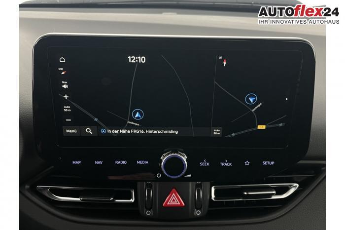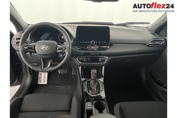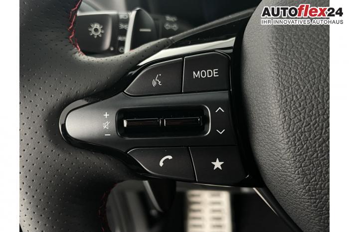 Android Auto, App Connect, Apple CarPlay, Bluetooth, Full Link, Navigationssystem 10,25'', Smart Link, Sprachsteuerung, USB-Anschluss, Bi-LED-Scheinwerfer, LED Tagfahrlicht, LED-Rückleuchten, Lichtsensor, Elektrische Fensterhebern vorn und hinten, Getönte Scheiben, Dachhimmel in Schwarz, Doppelter Laderaumboden, Durchladeeinrichtung, Lederlenkrad, Lenkradheizung, Mittelarmlehne vorn und hinten, Multifunktions-Lederlenkrad mit Schaltwippen, beheizbar, Schaltwippen am Lenkrad, Spiegel automatisch abblendbar, Sport-Pedale in Edelstahl, Sportlenkrad, Automatische Zweizonen - Klimaregelung , 18'' Alufelgen der Größe 225/40 R18, Alarmanlage, Elektrische Parkbremse mit AutoHold, Fahrer- und Beifahrerairbag, ISOFIX + TopTether, Vorder- und Seitenaribags, Beifahrersitz höhenverstellbar, Fahrersitz höhenverstellbar, Fahrersitz mit elektrischer Lendenwirbelstütze, Vordersitze beheizbar, Hyundai Garantie 5 Jahre, Autonomer Notbremsassistent, Berganfahrassistent HAC, Fahrprofilauswahl, Frontkollisionswarner mit Fußgänger-/Fahrradfahrererken-nung FCA, Intelligente Geschwindigkeitsassistent ISLA, Park Distance Control vorne und hinten, Reifendruck-Kontrollsystem, Rückfahrkamera, Spurhalteassistent LKA, Tempomat, Virtual Cockpit, Zentralverriegelung mit Fernbedienung, [ISLA] adaptive Geschwindigkeitsregelanlage, Start/Stopp-Automatik, Außenspiegel elektrisch anklappbar, Außenspiegel elektrisch beheizbar, Außenspiegel elektrisch einstellbar, Außenspiegelgehäuse in Schwarz, Dachreling, EU-Fahrzeug mit Tageszulassung