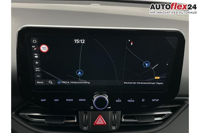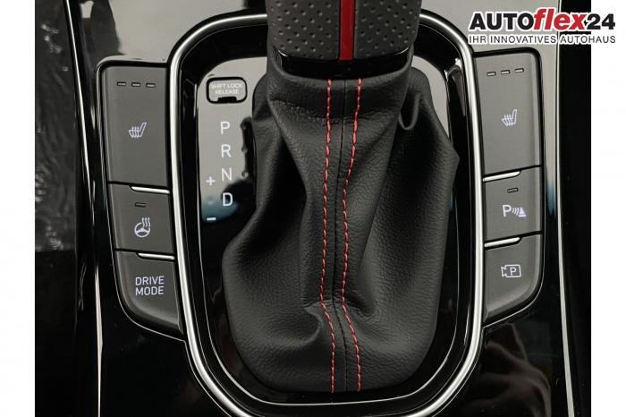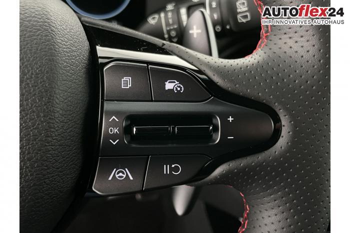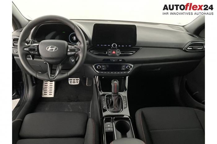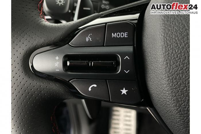 Android Auto, Apple CarPlay, Bluetooth, Navigationssystem 10,25'', Sprachsteuerung, USB-Anschluss, Bi-LED-Scheinwerfer, LED Tagfahrlicht, LED-Rückleuchten, Lichtsensor, Elektrische Fensterhebern vorn und hinten, Getönte Scheiben, Dachhimmel in Schwarz, Lederlenkrad, Lenkradheizung, Mittelarmlehne vorn und hinten, Spiegel automatisch abblendbar, Sport-Multifunktionslederlenkrad mit Schaltwippen, beheizbar , Sport-Pedale in Edelstahl, Sportlenkrad, Automatische Zweizonen - Klimaregelung , 18'' Alufelgen der Größe 225/40 R18, Alarmanlage, Elektrische Parkbremse mit AutoHold, Fahrer- und Beifahrerairbag, ISOFIX + TopTether, Vorder- und Seitenaribags, Beifahrersitz höhenverstellbar, Fahrersitz höhenverstellbar, Fahrersitz mit elektrischer Lendenwirbelstütze, Vordersitze beheizbar, Hyundai Garantie 5 Jahre, Autonomer Notbremsassistent, Berganfahrassistent HAC, Fahrprofilauswahl, Frontkollisionswarner mit Fußgänger-/Fahrradfahrererken-nung FCA, Intelligente Geschwindigkeitsassistent ISLA, Park Distance Control vorne und hinten, Reifendruck-Kontrollsystem, Rückfahrkamera, Spurhalteassistent LKA, Tempomat, Virtual Cockpit, Zentralverriegelung mit Fernbedienung, [ISLA] adaptive Geschwindigkeitsregelanlage, Start/Stopp-Automatik, Außenspiegel elektrisch anklappbar, Außenspiegel elektrisch beheizbar, Außenspiegel elektrisch einstellbar, Außenspiegelgehäuse in Schwarz, Dachreling, EU-Fahrzeug mit Tageszulassung