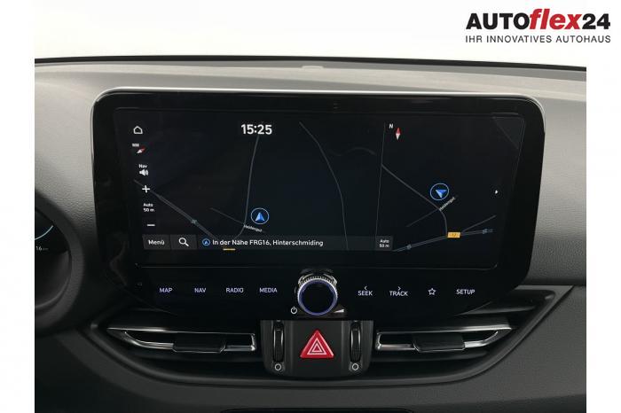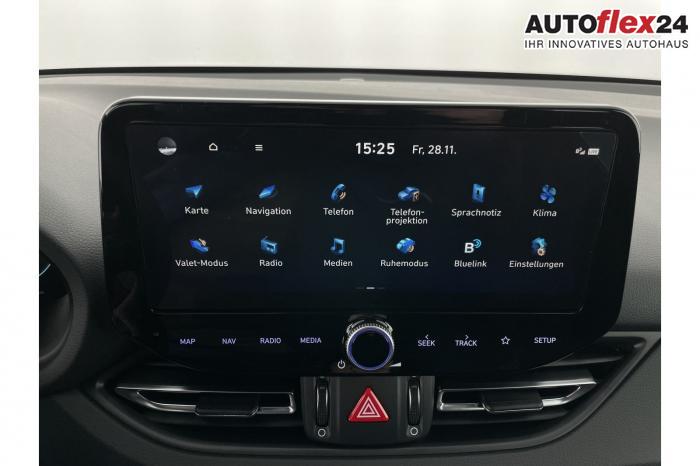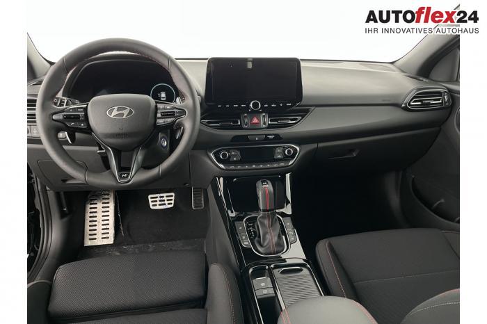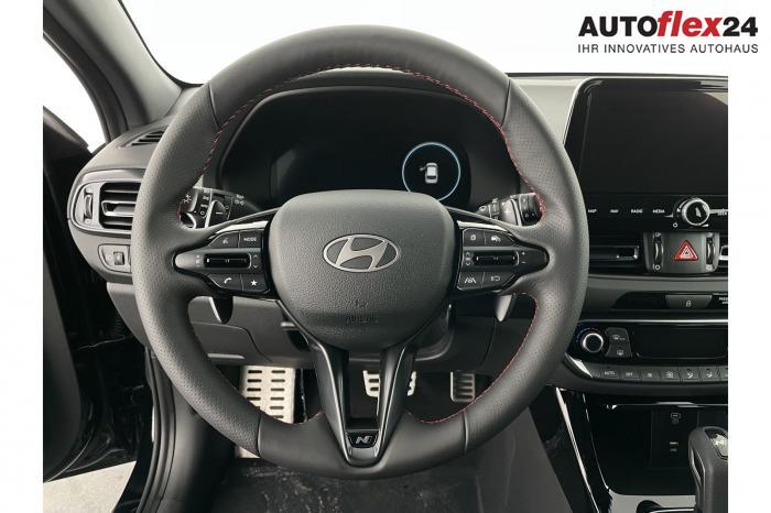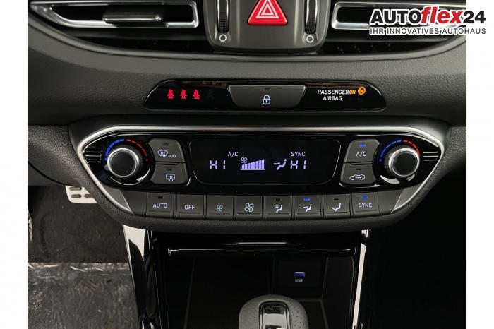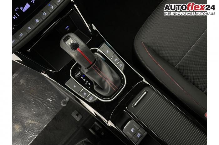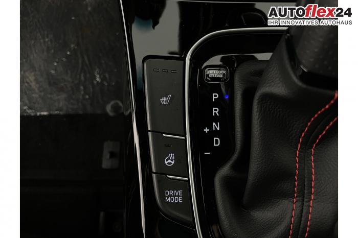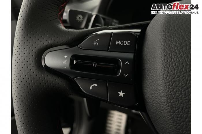 Android Auto, App Connect, Apple CarPlay, Bluetooth, Full Link, Navigationssystem 10,25'', Smart Link, Sprachsteuerung, USB-Anschluss, Bi-LED-Scheinwerfer, LED Tagfahrlicht, LED-Rückleuchten, Lichtsensor, Elektrische Fensterhebern vorn und hinten, Getönte Scheiben, Dachhimmel in Schwarz, Doppelter Laderaumboden, Durchladeeinrichtung, Lederlenkrad, Lenkradheizung, Mittelarmlehne vorn und hinten, Multifunktions-Lederlenkrad mit Schaltwippen, beheizbar, Spiegel automatisch abblendbar, Sport-Pedale in Edelstahl, Automatische Zweizonen - Klimaregelung , 18'' Alufelgen der Größe 225/40 R18, Alarmanlage, Elektrische Parkbremse mit AutoHold, Fahrer- und Beifahrerairbag, ISOFIX + TopTether, Vorder- und Seitenaribags, Beifahrersitz höhenverstellbar, Fahrersitz höhenverstellbar, Fahrersitz mit elektrischer Lendenwirbelstütze, Geteilte Rücksitzbank, Oberschenkelauflage für Fahrersitz ausziehbar, Vordersitze beheizbar, Hyundai Garantie 5 Jahre, Autonomer Notbremsassistent, Berganfahrassistent HAC, Fahrprofilauswahl, Frontkollisionswarner mit Fußgänger-/Fahrradfahrererken-nung FCA, Intelligente Geschwindigkeitsassistent ISLA, Park Distance Control vorne und hinten, Reifendruck-Kontrollsystem, Rückfahrkamera, Spurhalteassistent LKA, Tempomat, Virtual Cockpit, Zentralverriegelung mit Fernbedienung, [ISLA] adaptive Geschwindigkeitsregelanlage, Start/Stopp-Automatik, Außenspiegel elektrisch anklappbar, Außenspiegel elektrisch beheizbar, Außenspiegel elektrisch einstellbar, Außenspiegelgehäuse in Schwarz, Dachreling, EU-Fahrzeug mit Tageszulassung