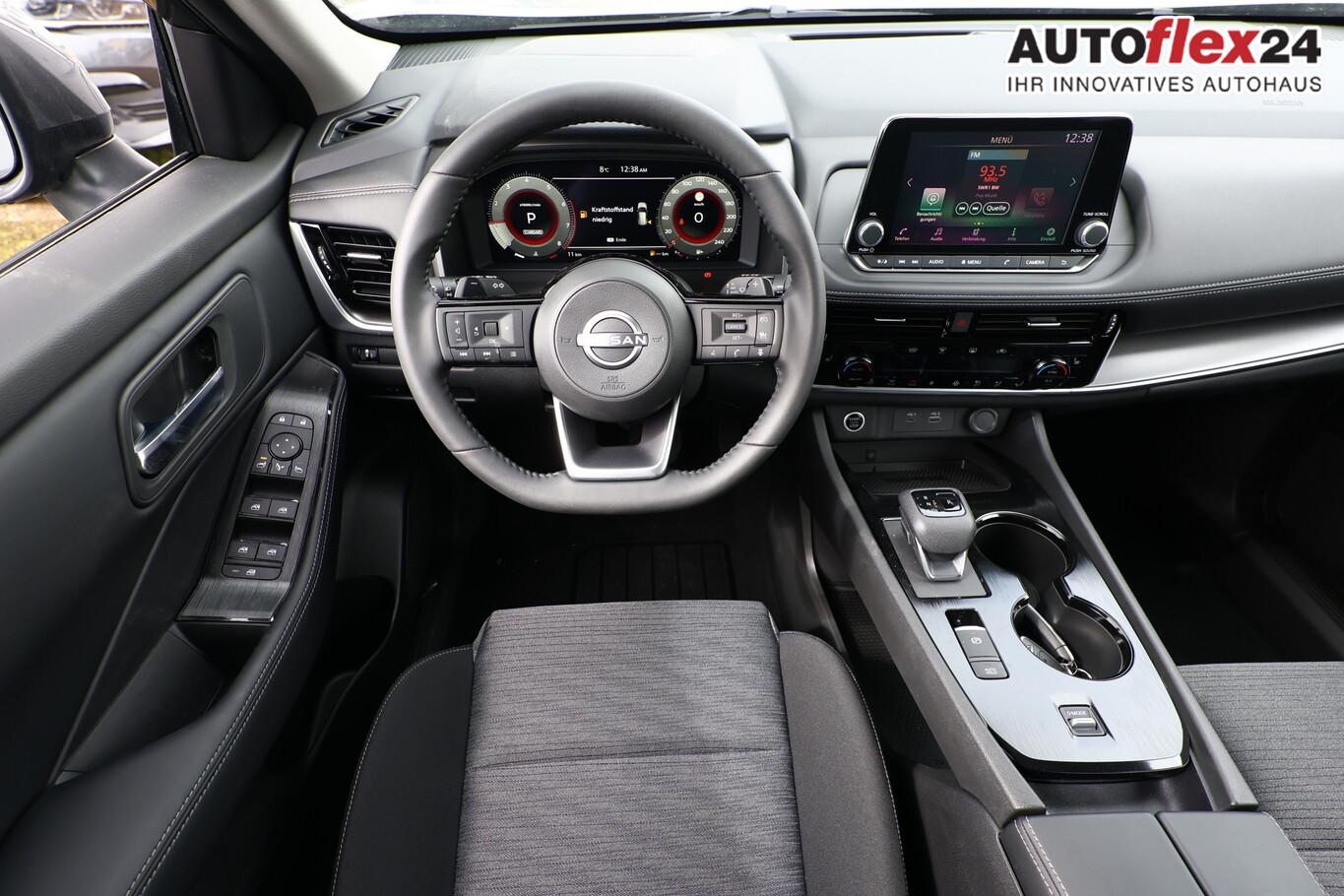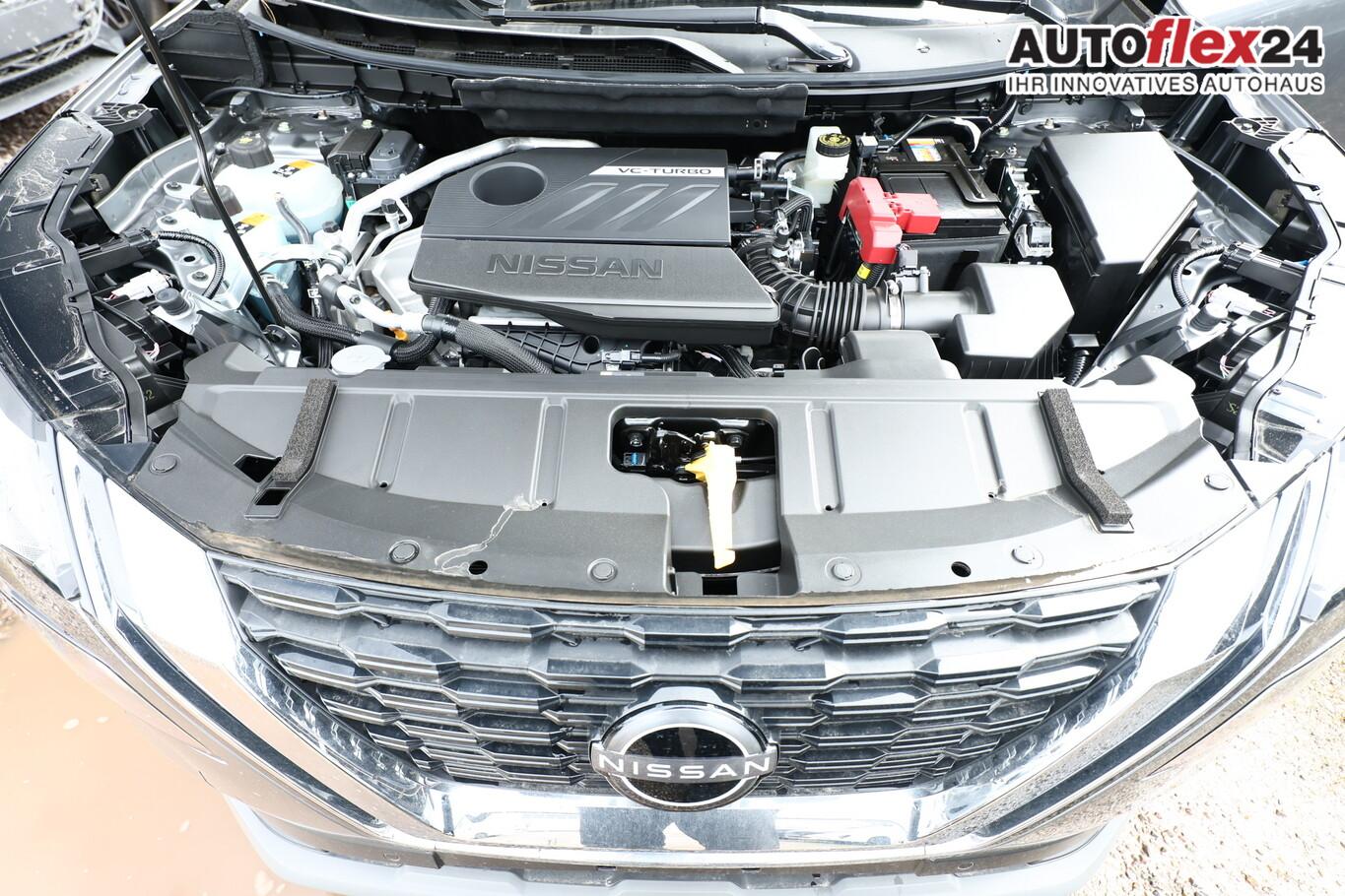 Familien-Paket, Frontscheibe heizbar, Innenraumfilter: Pollenfilter, Klimaautomatik 3-Zonen, Lenkrad heizbar, LM-Felgen 18 Zoll, Navigation in Verbindung mit dem Smartphone (über Apple Carplay / Android Auto /...), Sitzheizung hinten (2.Sitzreihe), Sitzheizung vorn, Sommerreifen 235/60/R18, Sonnenschutzrollo an Türscheiben hinten, Zentralverriegelung, Ausstattungs-Paket: Nissan Connect (6 Lautsprecher / Radioempfang digital (DAB) / Touchscreen-Farbdisplay (8,0 Zoll) in Mittelkonsole / Bluetooth-Schnittstelle / Freisprechanlage Bluetooth / Smartphone Schnittstelle (Apple CarPlay & Android Auto) / Service-System: Amazon Alexa / Service-System: Google Services / Service-System: Nissan Connect Services), Motor 1,5 Ltr. - 120 kW VC-T MHEV (Mild-Hybrid 120 kW (Motor 1,5 Ltr. - 120 kW VC-T MHEV)), Induktionsladeschale für Smartphone, Innenspiegel mit Abblendautomatik, Instrumentenanzeige TFT-Farbdisplay (12,3 Zoll), Karosserie: 5-türig, Lendenwirbelstütze Sitz vorn links, elektr. verstellbar, Notbrems-Warnblinkautomatik, Otto-Partikelfilter (OPF), Parkbremse elektrisch, Radstand 2705 mm, Sitz vorn links höhenverstellbar, Sitzbezug / Polsterung: Stoff, USB-Anschluss im Fond, Anti-Blockier-System (ABS), Antriebsart: Frontantrieb, Elektron. Stabilitäts-Programm (ESP), Getriebe Automatik stufenlos - X-Tronic-CVT, Airbag Fahrer-/Beifahrerseite, Isofix-Aufnahmen für Kindersitz, Keyless-Entry, Rücksitz geteilt/klappbar, Schließ-/Startsystem intelligent key, Seitenairbag vorn mitte (Center-Airbag), Fahrmodusschalter, Auto-Hold-Funktion, Fahrassistenz-System: Auffahrwarnsystem (Forward Collision Warning, FCW), Fahrassistenz-System: Verkehrszeichenerkennung, Geschwindigkeits-Regelanlage (Tempomat) mit Abstandsregelung, Rückfahrkamera, Fahrassistenz-System: Sicherheitssystem ERA GLONASS mit automatischem Notruf, Lenkrad (Leder) mit Multifunktion, Außenspiegel elektr. anklappbar, Außenspiegel elektr. verstell- und heizbar, Fahrassistenz-System: Fernlichtassistent, Fahrassistenz-System: Totwinkel-Assistent, Heckleuchten LED, Licht- und Regensensor, Scheinwerfer LED, Tagfahrlicht LED, Einparkhilfe hinten, Einparkhilfe vorn, Fahrassistenz-System: aktiver Spurhalteassistent, mit korrigierendem Bremseingriff, Fahrassistenz-System: Autonomer Notbrems-Assistent, Fahrassistenz-System: Müdigkeitserkennungs-Sensor, Fahrassistenz-System: Querverkehrs-Assistent Heck (Rear Cross Traffic Alert, RCTA), Reifendruck-Kontrollsystem