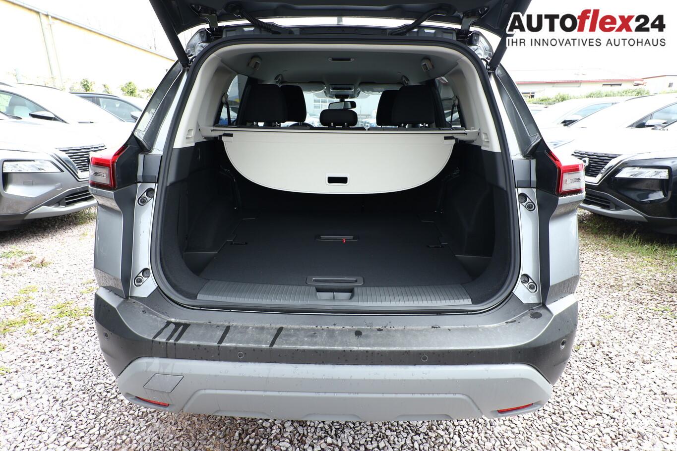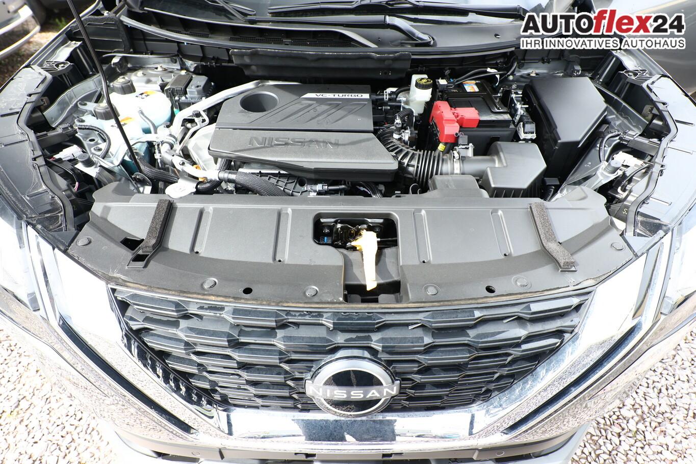 Fahrassistenz-System: ProPilot mit Navi-Link (Fahrassistenz-System: Autonomer Lenk-Assistent für selbstständiges Spurhalten / Fahrassistenz-System: Autom. Distanzregelung mit vorausschauender Geschw.-Regelung / Fahrassistenz-System: Stauassistent inkl. Stop&Go-Funktion), Elektrische Heckklappe (sensorgesteuert), Familien-Paket, Frontscheibe heizbar, Innenraumfilter: Pollenfilter, Klimaautomatik 3-Zonen, Lenkrad heizbar, LM-Felgen 18 Zoll, Sitzbezug / Polsterung: Stoff, Sitzheizung hinten (2.Sitzreihe), Sitzheizung vorn, Sommerreifen 235/60 R18, Sonnenschutzrollo an Türscheiben hinten, Zentralverriegelung, Motor 1,5 Ltr. - 120 kW VC-T MHEV (Mild-Hybrid 120 kW (Motor 1,5 Ltr. - 120 kW VC-T MHEV)), Ausstattungs-Paket: Nissan Connect Navigationssystem (Radioempfang digital (DAB) / Touchscreen-Farbdisplay (12,3 Zoll) / Bluetooth-Schnittstelle / Freisprechanlage Bluetooth / Navigationssystem / Smartphone Schnittstelle (Apple CarPlay & Android Auto) / Sprachbediensystem Spracherkennung / Around View Monitor (360° Umgebungsansicht) / Kamerasystem Around View / Service-System: Amazon Alexa / Service-System: Google Services / Service-System: Nissan Connect Services), Ambiente-Beleuchtung Mittelkonsole, Elektr. Bremskraftverteilung (EBD), Induktionsladeschale für Smartphone, Innenspiegel mit Abblendautomatik, Instrumentenanzeige TFT-Farbdisplay (12,3 Zoll), Karosserie: 5-türig, Lendenwirbelstütze Sitz vorn links, elektr. verstellbar, Lendenwirbelstütze Sitz vorn rechts, Notbrems-Warnblinkautomatik, Otto-Partikelfilter (OPF), Parkbremse elektrisch, Radstand 2705 mm, Sitz vorn links höhenverstellbar, Sitz vorn rechts höhenverstellbar, USB-Anschluss im Fond, Anti-Blockier-System (ABS), Antriebsart: Frontantrieb, Elektron. Stabilitäts-Programm (ESP), Getriebe Automatik stufenlos - X-Tronic-CVT, Airbag Fahrer-/Beifahrerseite, Isofix-Aufnahmen für Kindersitz, Keyless-Entry, Kopf-Airbag-System, Rücksitzbank verschiebbar, Rücksitzlehne geteilt (40:20:40), Seitenairbag vorn mitte (Center-Airbag), Verglasung hinten abgedunkelt, Fahrmodusschalter, Dachreling, Auto-Hold-Funktion, Fahrassistenz-System: Auffahrwarnsystem (Forward Collision Warning, FCW), Fahrassistenz-System: Verkehrszeichenerkennung, Geschwindigkeits-Regelanlage (Tempomat) mit Abstandsregelung, Rückfahrkamera, Fahrassistenz-System: Sicherheitssystem ERA GLONASS mit automatischem Notruf, Lenkrad (Leder) mit Multifunktion, Außenspiegel elektr. anklappbar, Außenspiegel elektr. verstell- und heizbar, Fahrassistenz-System: Fernlichtassistent, Fahrassistenz-System: Totwinkel-Assistent, Heckleuchten LED, Licht- und Regensensor, Scheinwerfer LED, Tagfahrlicht LED, Einparkhilfe hinten, Einparkhilfe vorn, Fahrassistenz-System: aktiver Spurhalteassistent, mit korrigierendem Bremseingriff, Fahrassistenz-System: Autonomer Notbrems-Assistent, Fahrassistenz-System: Müdigkeitserkennungs-Sensor, Fahrassistenz-System: Querverkehrs-Assistent Heck (Rear Cross Traffic Alert, RCTA), Reifendruck-Kontrollsystem