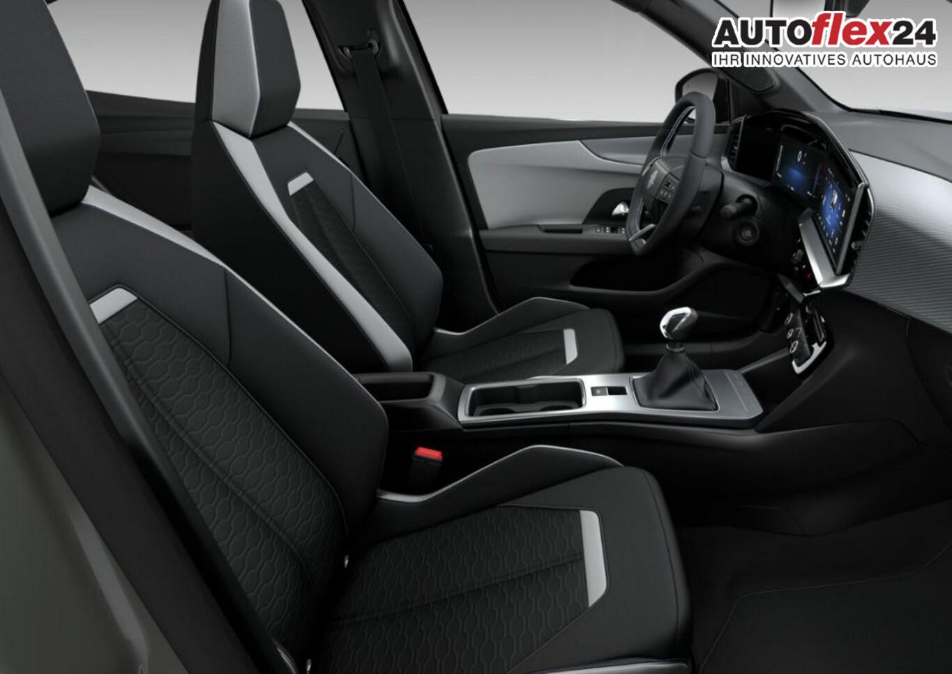 Parkpilotsystem hinten, Airbag Fahrer-/Beifahrerseite, Außenspiegel elektr. verstell- und heizbar, Außenspiegelgehäuse in Schwarz, Beifahrersitz 4-fach manuell einstellbar, Fahrassistenz-System: Autonomer Notbremsassistent, Fahrassistenz-System: Berganfahrassistent, Fahrassistenz-System: Spurhalteassistent, Fahrersitz 6-fach manuell einstellbar, Fensterheber elektr. vorn + hinten, Geschwindigkeits-Begrenzeranlage, Geschwindigkeits-Regelanlage (Tempomat), Isofix-Aufnahmen für Kindersitz, Kabellose Smartphone-Schnittstelle (Apple CarPlay & Android Auto), Klimaautomatik, Kombiinstrument digital (10"), Leseleuchten vorn und hinten, Multimedia Infotainment inkl. 10"-Touchscreen, 6 Lautsprecher, Navigation in Verbindung mit dem Smartphone (über Apple Carplay / Android Auto /...), Notrufsystem, Opel Blitz vorne in Silber, hinten und Modellname hinten in Schwarz, Reifendruckkontrollsystem, Rücksitzlehne geteilt/umklappbar (60:40), Scheibenwischer mit Regesensor, Servolenkung (elektrisch), Sommerreifen 215/65 R16, Sonnenblenden mit Spiegel, Start/Stopp System, USB-Anschluss (Typ C), Zentralverriegelung mit Fernbedienung, Bluetooth Audio-Streaming, DAB-Tuner (Radioempfang digital), Dach Wagenfarbe, Dachhimmel schwarz, Dachspoiler, Feststellbremse elektrisch, Karosserie: 5-türig, Motor 1,2 Ltr. - 100 kW, Otto-Partikelfilter (OPF), Radstand 2557 mm, Sitzbezug / Polsterung: Stoff, Stahlfelgen 6,5x16, Freisprecheinrichtung Bluetooth, Anti-Blockier-System (ABS), Antriebsart: Frontantrieb, Elektron. Stabilitäts-Programm Plus (ESP), Getriebe 6-Gang, Kopf-Airbag-System, Seitenairbag vorn, Fahrassistenz-System: Verkehrszeichenerkennung, Einschaltautomatik für Fahrlicht, Fahrassistenz-System: Fernlichtassistent, Heckleuchten LED, Scheinwerfer LED, Tagfahrlicht LED, Fahrassistenz-System: Müdigkeitserkennungs-Sensor