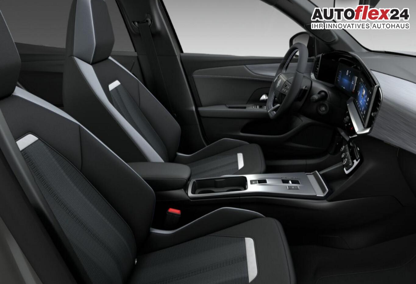 Infotainment-Paket (6 Lautsprecher / Induktionsladeschale für Smartphone (Wireless Charging) / Multifunktionsanzeige mit Touchscreen-Farbdisplay 12 Zoll / Opel Connect / Audio-Navigationssystem Multimedia Navi Pro (10" Display) / Smartphone Schnittstelle (Apple CarPlay & Android Auto)), Winter-Paket (Lenkrad heizbar / Sitzheizung vorn), Reifen-Reparaturkit, Ablagetasche an Rückseite der Vordersitzlehnen, Fahrassistenz-System: Automatisches Fernlicht, Fahrassistenz-System: Notbrems-Assistent, Fahrassistenz-System: Spurhalteassistent, Innenspiegel abblendbar, Isofix-Aufnahmen für Kindersitz, Kombiinstrument Digital, Lenkrad (Leder), Lenkrad heizbar, Leseleuchten LED vorn, LM-Felgen 17 Zoll, Notrufassistent, Otto-Partikelfilter, Reifen 215/60 R17, Reifendruck Überwachung, Sitz vorn links höhenverstellbar, Sommerreifen, Start-/Stopp System, Zentralverriegelung, Black-Paket (Dach, Design-Ausführung (schwarz) / Kühlergrill, Opel Vizor, Rahmen in Hochglanz-Schwarz / Schriftzug Heckklappe Schwarz, Hochglanz), Parkpilotsystem hinten (Rückfahrkamera mit 180° Umgebungsansicht), DAB-Tuner (Radioempfang digital), Karosserie: 5-türig, Mild-Hybrid 107 kW (Motor 1,2 Ltr. - 100 kW), Radstand 2557 mm, Freisprecheinrichtung Bluetooth, Anti-Blockier-System (ABS), Antriebsart: Frontantrieb, Elektron. Stabilitäts-Programm Plus (ESP), Getriebe Automatik - Doppelkupplungsgetriebe (6-Stufen, Hybrid), Klimaautomatik, Fahrassistenz-System: Verkehrszeichenerkennung, Heckleuchten LED, Scheibenwischer mit Regensensor, Fahrassistenz-System: Müdigkeitserkennungs-Sensor
