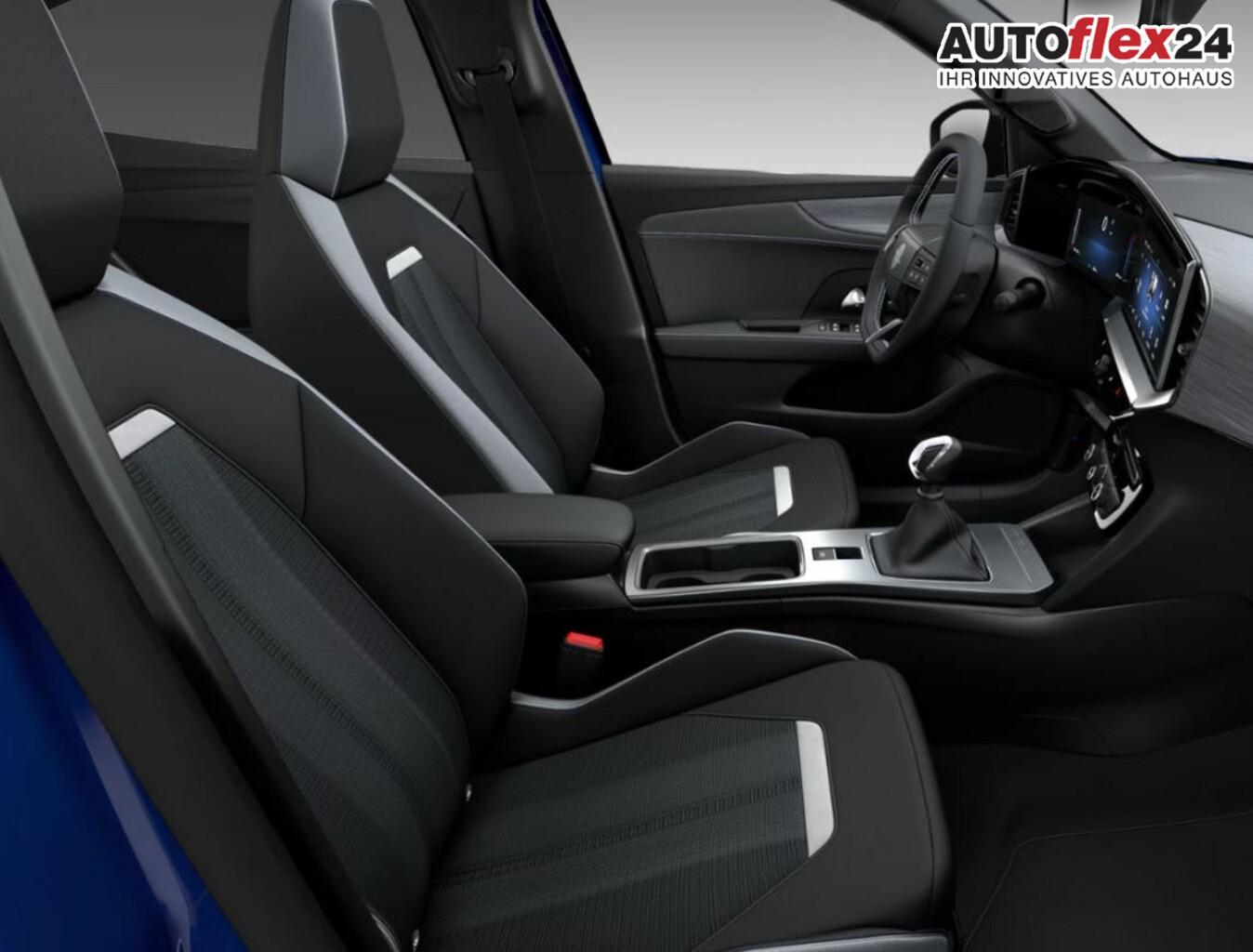 Winter-Paket (Lenkrad heizbar / Sitzheizung vorn), Induktionsladeschale für Smartphone (Wireless Charging), Airbag Fahrer-/Beifahrerseite, Audio-Navigationssystem inkl. 10"-Touchscreen, Beifahrersitz 6-fach manuell einstellbar, Einschaltautomatik für Fahrlicht, Fahrassistenz-System: Berganfahrassistent, Fahrassistenz-System: Spurhalteassistent, Fahrersitz 6-fach manuell einstellbar, Fensterheber elektr. vorn + hinten, Freisprecheinrichtung (Bluetooth), Innenspiegel mit Abblendautomatik, Intelli-Lux Matrix-LED-Scheinwerfer, Isofix-Aufnahmen für Kindersitz, Kabellose Smartphone-Schnittstelle (Apple CarPlay & Android Auto), Kombiinstrument digital (10"), LED-Ambientebeleuchtung in Ablagefächern der Türen, vorn, Lenkrad (Kunstleder, 3-Speichen), Lenksäule, höhen- und neigungseinstellbar, Leseleuchten vorn und hinten, Notrufsystem, Opel Blitz vorn und hinten und Modellname hinten in Schwarz, Reifendruckkontrollsystem, Rücksitzlehne geteilt/umklappbar (60:40), Servolenkung (elektrisch), Sitz vorn links höhenverstellbar, Sommerreifen 215/55 R18, Sonnenblenden mit Spiegel (beleuchtet), Start/Stopp System, Steckdose (12V-Anschluss) vorn, Türeinsätze aus Kunstleder, USB-Anschluss (Typ C), Zentralverriegelung mit Fernbedienung, Fahrassistenz-Paket: Active Drive Assist plus (Geschwindigkeits-Regelanlage (Tempomat) mit Abstandsregelung / Fahrassistenz-System: Autonomer Notbrems-Assistent mit Frontkollisionswarnung und Fußgänger- und Fahrraderkennung), Technologie-Paket Park & Go (Rückfahrkamera mit 180° Umgebungsansicht / Außenspiegel elektr. verstell- und heizbar, elektr. anklappbar / Fahrassistenz-System: Totwinkel-Assistent / Parkpilotsystem vorn und hinten), 6 Lautsprecher, Bluetooth Audio-Streaming, DAB-Tuner (Radioempfang digital), Dachhimmel schwarz, Dachspoiler, Fahrzeugschlüssel (2) beide klappbar, Feststellbremse elektrisch, Gepäck-/Laderaumboden doppelt, Gepäcknetz / Tasche an Vordersitzlehne, Karosserie: 5-türig, Motor 1,2 Ltr. - 100 kW, Opel Connect, Radstand 2557 mm, Sitz vorn rechts höhenverstellbar, USB-Schnittstelle hinten (2-fach), Anti-Blockier-System (ABS), Antriebsart: Frontantrieb, Elektron. Stabilitäts-Programm Plus (ESP), LM-Felgen 7x18 (5-Y-Speichen, Bicolor), Getriebe 6-Gang, Klimaautomatik, Keyless Start, Kopf-Airbag-System, Mittelarmlehne vorn mit Ablagefach, Schließ-/Startsystem Keyless Open, Seitenairbag vorn, Sitzbezug / Polsterung: Stoff / Ledernachbildung, Wärmeschutzverglasung hinten abgedunkelt (Solar-Protect), Fahrassistenz-System: Verkehrszeichenerkennung, Fahrassistenz-System: Fernlichtassistent, Heckleuchten LED, Scheibenwischer mit Regensensor, Tagfahrlicht LED, Fahrassistenz-System: Müdigkeitserkennungs-Sensor