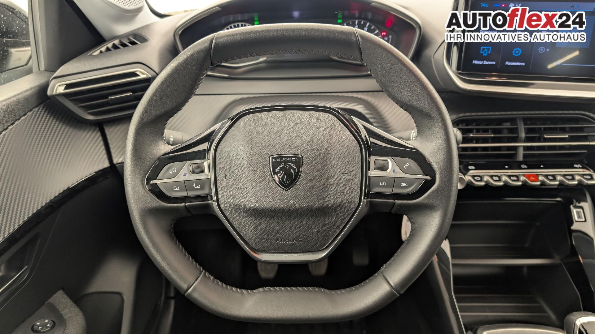 • Kompaktes Lenkrad aus Spaltleder mit integrierten Multimedia-Bedienelementen.