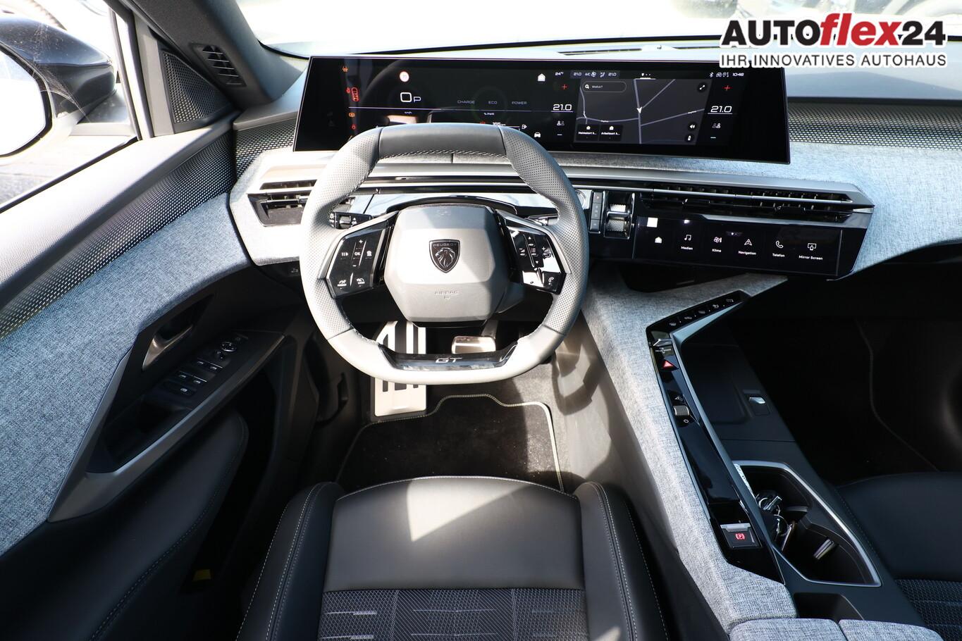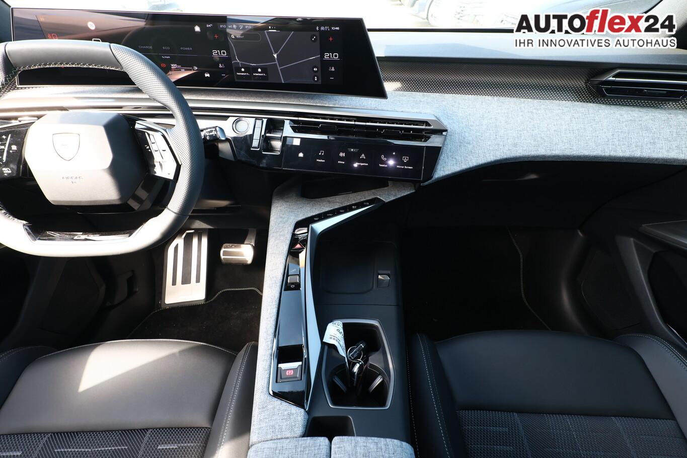 21"-Panoramadisplay, 6 Lautsprecher, Ambientenbeleuchtung, Dachreling schwarz, Einparkhilfe vorn, Fahrmodusschalter, Fensterheber elektr. hinten, Fensterzierleisten schwarz, Laderaumbeleuchtung, Lendenwirbelstütze Sitz vorn links, Lenkrad (Leder), LM-Felgen 19 Zoll, Radioempfang digital (DAB+), Reifen 225/55 R19, Schadstoffarm nach Abgasnorm Euro 6e (EU6 EA), Smartphone Schnittstelle kabellos (Apple Car Play/Android Auto), Panorama Navigations-Paket (Induktionsladeschale für Smartphone / Radioempfang digital (DAB+) / Freisprecheinrichtung Bluetooth / Navigationssystem i-Connect Advanced / USB-Anschluss (Typ C, 2-fach) / USB-Anschluss (Typ C, 3-fach) / Audiobedienung am Lenkrad), Außenspiegel und Spiegelfuss in Perla-Nera-Schwarz, Dachfarbe schwarz, Dachhimmel schwarz, Gepäckraumboden verschiebbar, variabel, Getränkehalter vorn, Innenspiegel mit Abblendautomatik, Karosserie: 5-türig, Kindersicherung elektrisch, Lenkrad heizbar, Mittelarmlehne hinten, Mobile Online Dienste Mirror Screen, Otto-Partikelfilter (GPF), Parkbremse elektrisch, Pedale Aluminium, Radstand Standard, Sitze vorn höhenverstellbar, Sonnenblenden mit Make-up-Spiegel, Steckdose (12V-Anschluß) im Koffer-/Laderaum, Warnanlage für Sicherheitsgurte, Anti-Blockier-System (ABS), Fahrassistenz-System: Aktiver Notbrems-Assistent (Active Safety Brake Plus), Antriebsart: Frontantrieb, Elektron. Stabilitäts-Programm (ESP, Bosch), Getriebe Automatik - Doppelkupplungsgetriebe (6-Stufen, Hybrid), Klimaautomatik, getrennt regelbar Fahrer-/Beifahrerseite, Airbag Beifahrerseite abschaltbar, Airbag Fahrer-/Beifahrerseite, Fensterheber elektr. vorn, links mit Impulsgeber, Isofix-Aufnahmen für Kindersitz, Kopf-Airbag-System, Kopf-Airbag-System hinten, Mittelarmlehne vorn, Rücksitzbank geteilt/klappbar automatisch (40:20:40), Seitenairbag vorn, Seitenscheiben hinten und Heckscheibe getönt, Sitzheizung vorn, Zentralverriegelung / Startanlage Keyless System, Zentralverriegelung mit Fernbedienung, Kofferraumdeckel / Heckklappe elektr. betätigt (öffnen + schliessen, sensorgesteuert), Fahrassistenz-System: Autom. Distanzregelung (ACC inkl. Stop&Go-Funktion), Fahrassistenz-System: Berganfahrhilfe, Fahrassistenz-System: Verkehrszeichenerkennung, Peugeot Connect-Box / SOS-Taste (Notruf für Lokalisierung Fahrzeug), Lenkrad mit Multifunktion, Lenkrad mit Schaltwippen/-tasten, Außenspiegel elektr. anklappbar, Außenspiegel elektr. verstell- und heizbar, beide, Einschaltautomatik für Fahrlicht, Fahrassistenz-System: Fernlichtassistent, Scheibenwischer mit Regensensor, Scheinwerfer Full-LED, Tagfahrlicht LED, Einparkhilfe hinten, Fahrassistenz-System: aktiver Spurassistent (Lenkunterstützung), Fahrassistenz-System: Müdigkeitserkennungs-Sensor, Reifendruck-Kontrollsystem