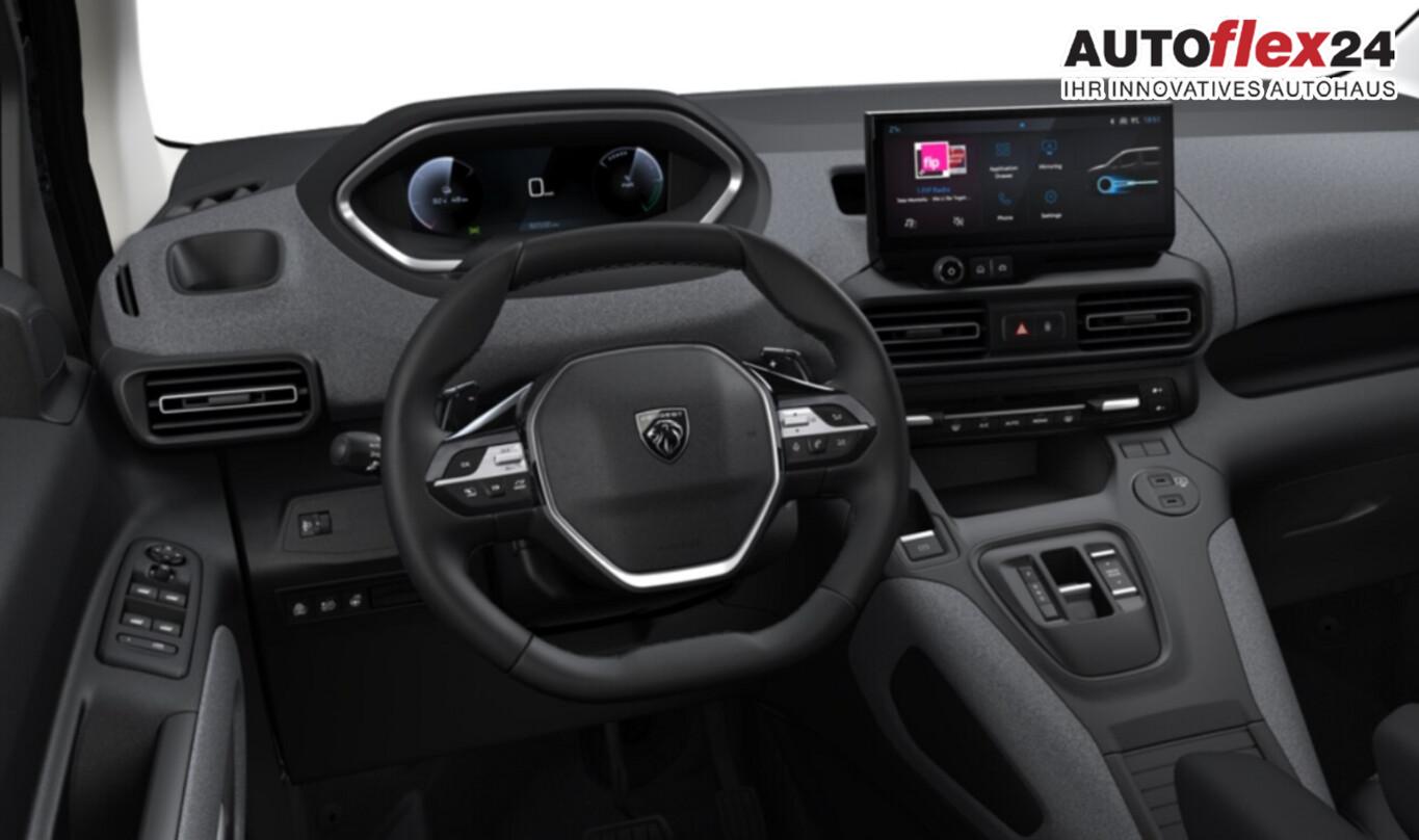 Style-Paket (Heckklappe, Scheibe ausstellbar / Heckscheibe aufstellbar / Heckscheibe heizbar / Heckscheibenwischer / Kindersicherung elektrisch / Schiebetüren links und rechts mit Verglasung / Verkleidung Schiebetürschiene in Wagenfarbe / LM-Felgen 6,5x16 (Taranaki) / Isofix-Aufnahmen für Kindersitz / Rücksitzbank klappbar 1/3-2/3 / Seitenscheiben hinten dunkel getönt und Heckscheibe stärker getönt / Dachreling schwarz, glänzend / Außenspiegel elektr. verstell-, heiz- und anklappbar), Rückfahrkamera mit 180° Umgebungsansicht, 6 Lautsprecher, Ablagetasche an Rückseite Vordersitzlehne, Außenspiegel in Schwarz, Fahrassistenz-System: Fernlichtassistent, Fahrassistenz-System: Müdigkeitserkennungs-Sensor, Fahrassistenz-System: Spurhalteassistent, Fensterheber elektrisch vorne & hinten, Freisprecheinrichtung Bluetooth, Geschwindigkeits-Regelanlage (Tempomat) inkl. Geschwindigkeits-Begrenzeranlage, Infotainment-System mit 10 Zoll Farb-Display HD, Leseleuchten vorn, Multikollisionsbremse, Navigation in Verbindung mit dem Smartphone (über Apple Carplay / Android Auto /...), Radioempfang Digital (DAB), Reifen 215/65 R16, Seitenairbag vorn, Sicht-Paket (Einschaltautomatik für Fahrlicht / Scheibenwischer mit Regensensor), Sitz vorn links höhenverstellbar (Lendenwirbelstütze Sitz vorn links, verstellbar / Mittelarmlehne für Fahrersitz), Elektron. Stabilitäts-Programm (ESP, Bosch) (Antischlupfregelung (ASR)), Airbag Fahrer-/Beifahrerseite (Airbag Beifahrerseite), Lenkrad mit Multifunktion (Lenkrad heizbar), Karosserie: 5-türig, Kombiinstrument digital (10,0 Zoll), Mobile Online Dienste Mirror Screen, Motor 1,5 Ltr. - 75 kW Blue-HDI FAP, Parkbremse elektrisch, Radstand 2785 mm, SCR-System (AdBlue-Technologie), Sitzbezug / Polsterung: Stoff, Türgriffe innen verchromt, Warnanlage für Sicherheitsgurte, Anti-Blockier-System (ABS), Fahrassistenz-System: Aktiver Notbrems-Assistent (Active Safety Brake), Getriebe 6-Gang, Klimaanlage, Airbag Beifahrerseite abschaltbar, Kopf-Airbag-System, Kopf-Airbag-System hinten, Super-Zentralverriegelung mit Fernbedienung, Verzurrösen Laderaum, Peugeot Connect-Box / SOS-Taste (Notruf für Lokalisierung Fahrzeug), Lenkrad (Leder), Servolenkung elektrisch, Nebelscheinwerfer, Tagfahrlicht LED, Einparkhilfe hinten, Reifendruck-Kontrollsystem, Rußpartikelfilter, Start/Stop-Anlage