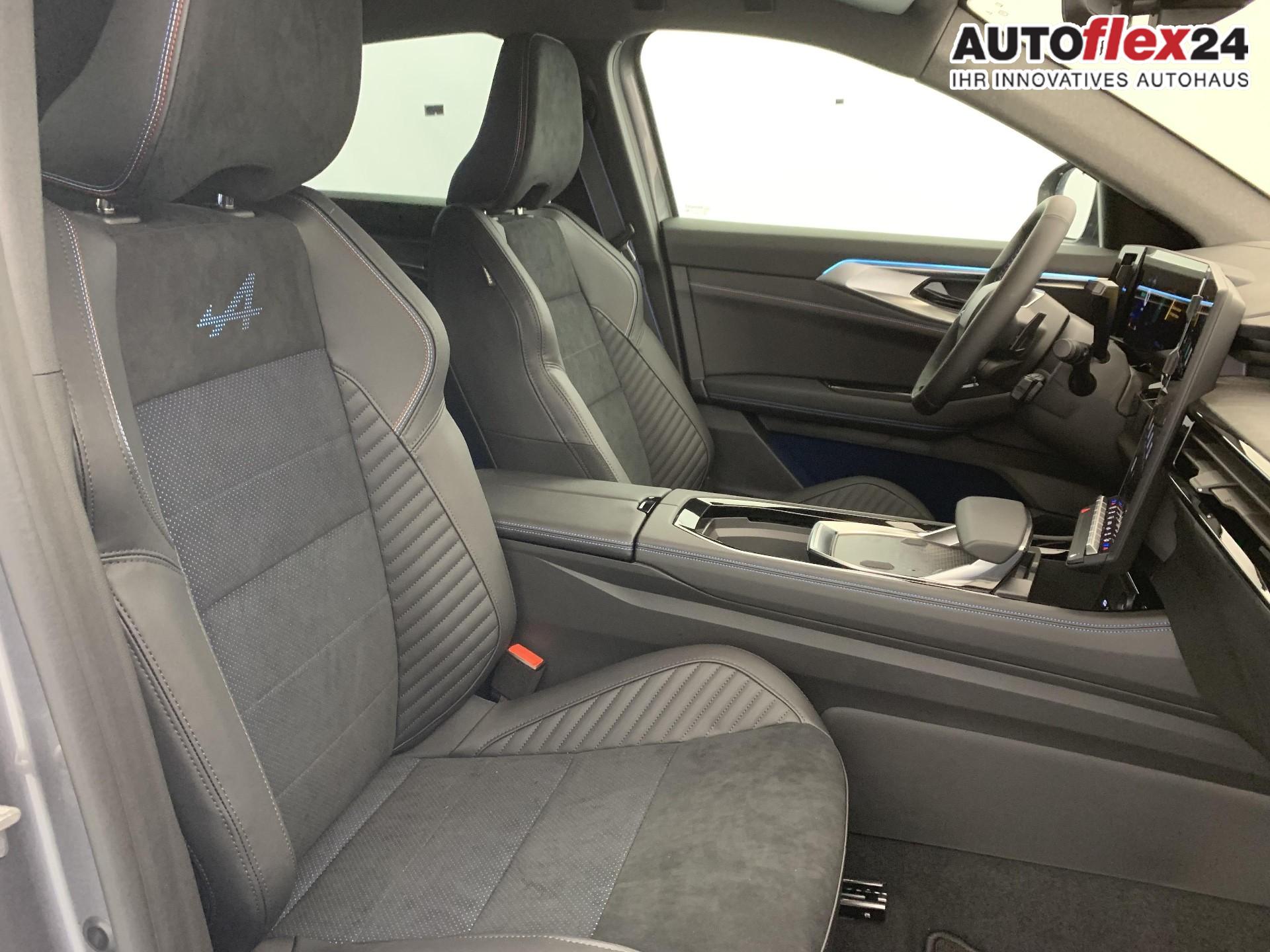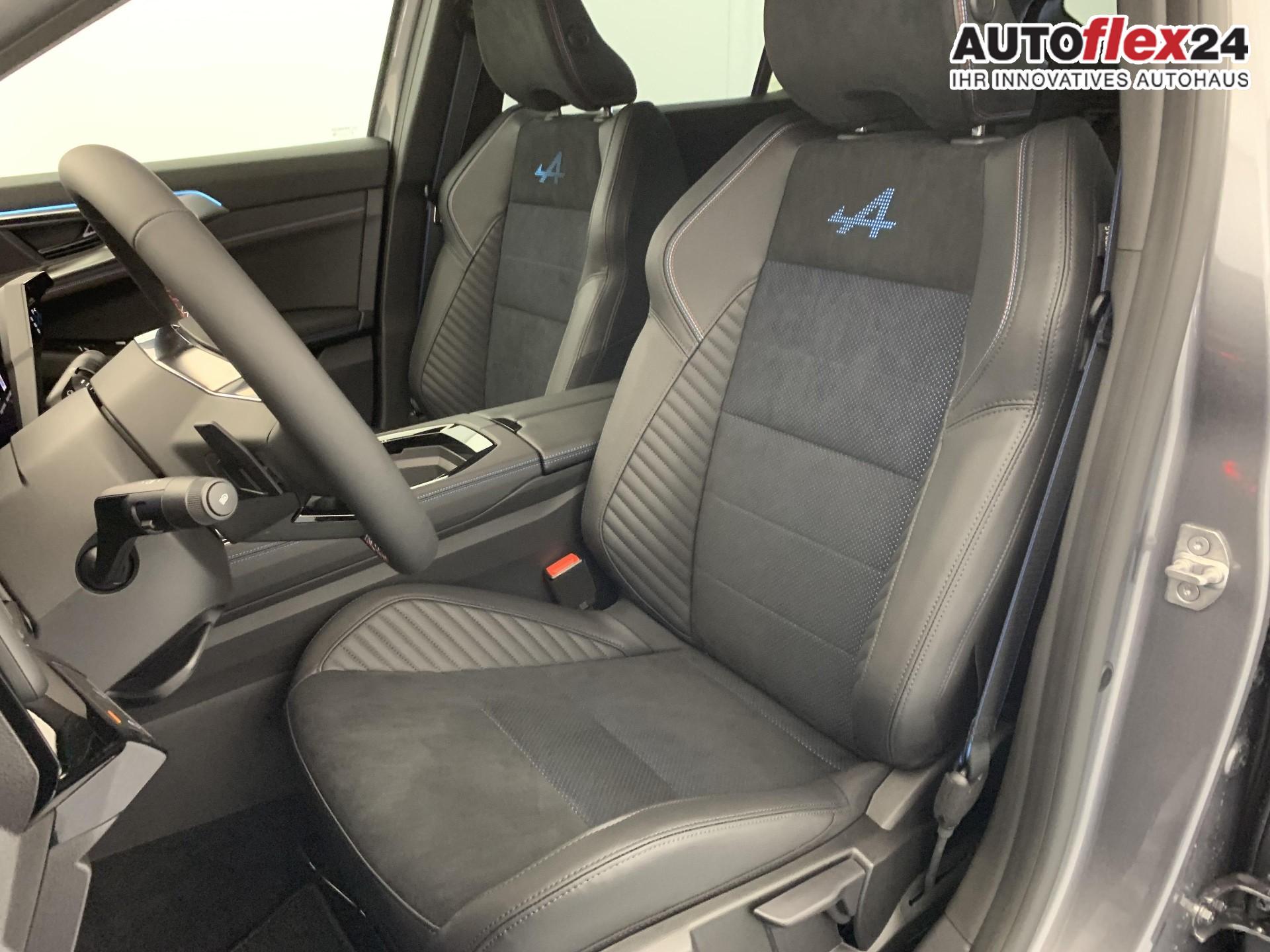 • Alcantara-Mischpolsterung mit blauen Nahten und leuchtendem Alpine-Logo