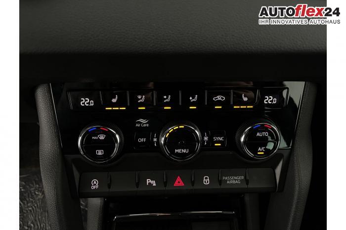 230-V-Steckdose und USB-C Anschluss, Bluetooth-Telefonvorbereitung, DAB-digitaler Radioempfang, Infotainment Navi 8, Phonebox mit induktiver Ladefunktion, Sprachsteuerung, USB-C Anschluss vorne, Wireless SmartLink, Ambientebeleuchtung, Fußraumbeleuchtung vorne/hinten, LED-Leseleuchten vorne/hinten, LED-Matrix Scheinwerfer [8G4] , LED-Tagfahrlicht, Licht- und Regensensor, Scheinwerferreinigungsanlage, Fensterheber elektrisch vorn und hinten, Sunset, 3-Speichen-Sport Multifunktionslenkrad in Leder, beheizbar mit Schaltwippen, Innenspiegel mit automatischer Abblendung, Lenkradheizung, Mittelarmlehne vorn, Textil- Fußmatten, Variabler Ladeboden im Kofferraum [PKP] , 2-Zonen CLIMATRONIC, Licht Paket, Park Paket, Technikpaket 8 Navi Plus, 18 Leichtmetallfelgen PROCYON schwarz, Alarm für KESSY, Fahrer Knieairbag, Fahrerairbag, Fahrerairbag und Beifahrerairbag, Isofix-Vorbereitung für die Rücksitze, Notruf (eCall), Seitenairbags vorne und Kopfairbags vorne/hinten, Beheizte Vordersitze, Design Interieur Sportline mit Thermoflux-Stoff in Schwarz, Fahrersitz mit Lendenwirbelstütze, Lendenwirbelstütze in den Vordersitzen [7P4] , Rücksitzlehne geteilt umklappbar, Sportsitze vorn, Anschlussgarantie 3 Jahre / 100.000km, 12-V-Steckdose, Adaptiver Abstandsassistent (ACC) bis 210 km/h [8T8] , Berganfahrassistent, Elektronische Parkbremse inkl. Auto Hold Funktion, Fahrmodusauswahl, Front Assistant - Warnsystem und Notbremsfunktion, Heckklappe mit elektr. Komfortöffnung [4E6], KESSY-Schlüsselloses Zugangs- und Start-Stopp-System, Müdigkeitserkennung, Parksensoren vorne/hinten, Reifendruckkontrolle, Rückfahrkamera, Spurhalteassistent, Verkehrszeichenerkennung, Virtuelles Cockpit, Zentralverriegelung mit Fernbedienung, Anhängekupplung schwenkbar mit Adapter, Außenspiegel elektrisch beheizbar, Außenspiegel elektrisch einstell- und beheizbar und anklappbar, Außenspiegel elektrisch einstellbar, Außenspiegel in Schwarz, Dachreling schwarz, EU-Fahrzeug mit Tageszulassung