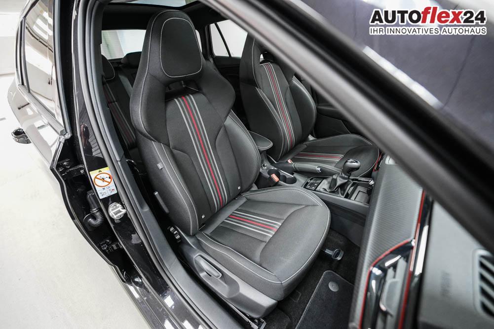 Beifahrersitz höhenverstellbar, Fahrersitz höhenverstellbar, Sport-Lederlenkrad, Lendenwirbelstütze, Mittelarmlehne vorne, Sitzbezug Stoff, Sportsitze, Lenkrad höhenverstellbar, Ambiente-Beleuchtung, Beheizbares Lenkrad, Multifunktionslenkrad, Isofix, Beifahrersitz umklappbar, Isofix Beifahrersitz, abgedunkelte Scheiben, Alufelgen 18 Zoll Ursa Schwarz, ABS, Alarmanlage, Außenspiegel elektrisch, Fensterheber elektrisch, Kopfairbags, Nebelscheinwerfer Corner Funktion, Seitenairbags, Servolenkung, Sitzheizung, ESP, Tempomat, Wegfahrsperre, Zentralverriegelung mit Funk, Außenspiegel beheizbar, Beifahrerairbag, Fahrerairbag, Parkpilot hinten, Parkpilot vorne, Reifendruckkontrolle, Regensensor, Digital Cockpit, Notbremsassistent, Spurhalteassistent, Verkehrszeichenerkennung, LED-Matrix-Scheinwerfer, Tagfahrlicht LED, Pannenset, Rückfahrkamera, Panoramadach, Kessy, StartStopSystem, Innenspiegel automatisch abbl., Berganfahrassistent, Müdigkeitswarnsystem, Notrufsystem, Schaltwippen, Klimaautomatik 2-Zonen, Android Auto, Apple Carplay, Freisprecheinrichtung, Induktionsladestation, Touchscreen, USB-C, Radio Infotainment Media, Radio DAB, Bluetooth, Bordcomputer, Wireless Smart Link, LED Rückleuchten, Fahrprofilauswahl, Dachhimmel in Schwarz,