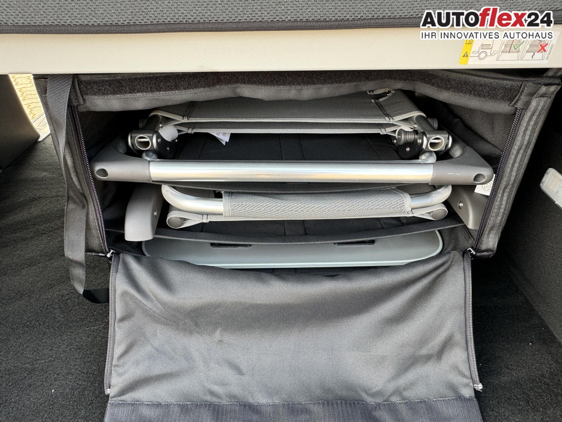 • Umklappbares Heckbett (1980 mm x 1070 mm) mit Tellerfedern