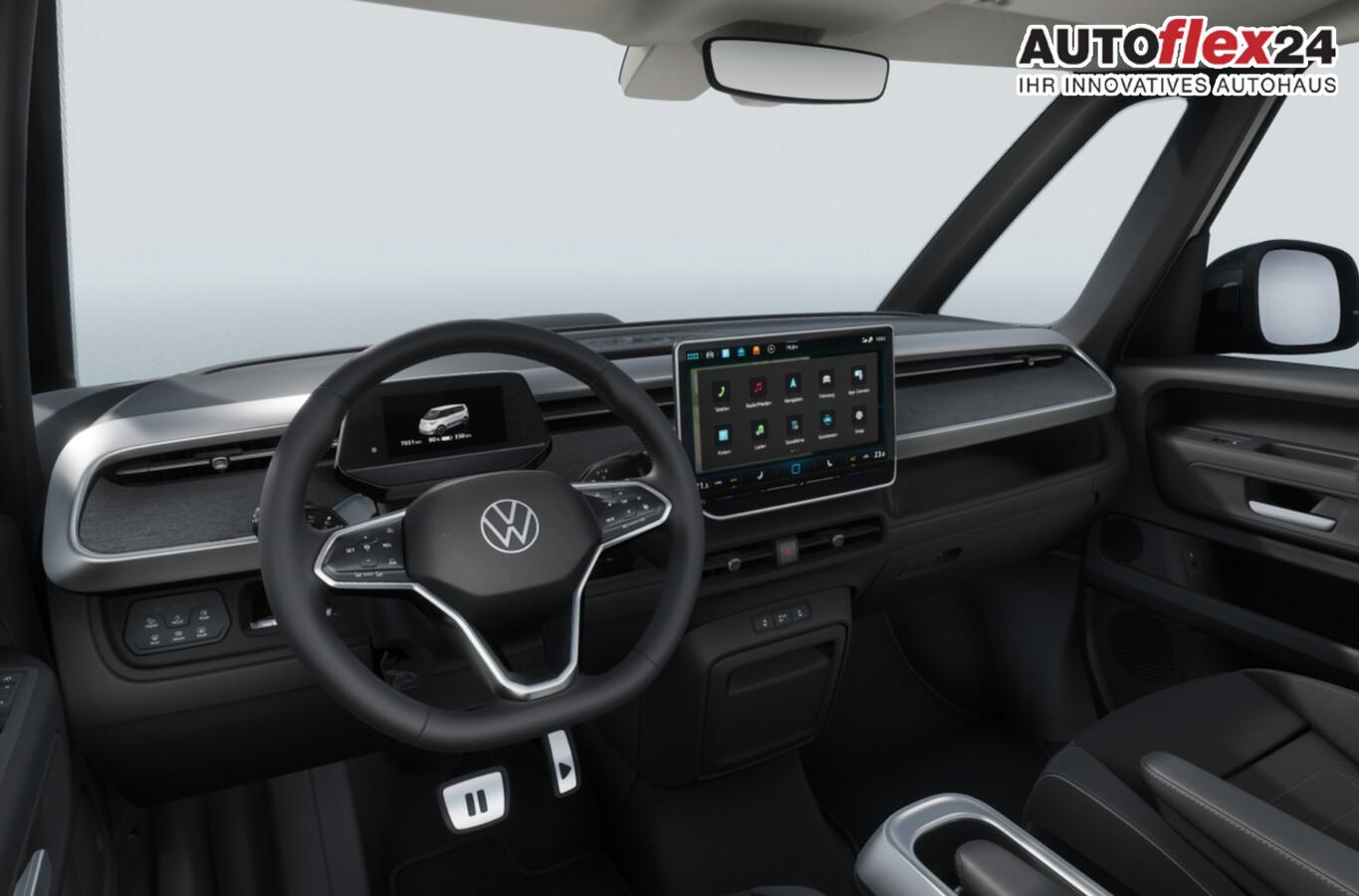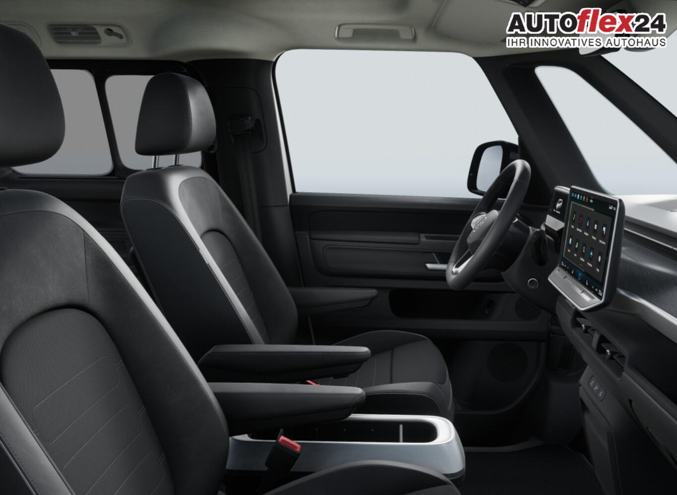 Ausstattungs-Paket: Easy Open & Close Plus (Fenster im Lade-/FG-Raum: - schiebbar, vorn links / Fenster im Lade-/FG-Raum: - schiebbar, vorn rechts / Schließ-/Startsystem Keyless Advanced mit Safesicherung / Umfeldleuchte in Heckklappe / Heckklappe elektr. betätigt Easy Open (öffnen + schliessen, sensorgesteuert) / Schiebetür Lade-/Fahrgastraum links elektr. betätigt Easy Open (sensorgesteuert) / Schiebetür Lade-/Fahrgastraum rechts elektr. betätigt Easy Open (sensorgesteuert)), Interieur-Paket Style Plus (Lenkrad schwarz) (Ambiente-Beleuchtung (30 Farben) / Sitzbezug / Polsterung: Stoff Seaqual / Sitze im Fahrerhaus: Fahrer- und Beifahrersitz Komfort / Sitze im Fahrerhaus: Fahrer- und Beifahrersitz mit Armlehnen beidseitig / Sitze vorn mit Massagefunktion / Sitze im Fahrerhaus: Fahrer- und Beifahrersitz elektr. verstellbar mit Memory, Einstiegshilfe links / Sitze im Fahrerhaus: Fahrer- und Beifahrersitz heizbar / Lenkrad heizbar (Leder) mit Multifunktion), Ausstattungs-Paket: Komfort-Paket Plus (Außenspiegel schwarz lackiert und Türgriffe außen in Wagenfarbe / Gepäckraum-Abtrennung / Trennnetz / Gepäckraumabdeckung / Rollo / Innenspiegel mit Abblendautomatik / Mittelkonsole vorn variabel (ID.Buzz Box) / Multiflex-Board / Scheibenwaschdüsen beheizt / Multimedia-Schnittstelle 2 x USB (Typ C) vorn, USB-Ladeanschluß (Typ C) 1 x vorn, hinten / Klimaanlage Climatronic 3-Zonen inkl. Fondbedienung / Sitze im Fahrerhaus: Fahrer- und Beifahrersitz heizbar / Lenkrad heizbar (Leder) mit Multifunktion / Regensensor), LM-Felgen vorn/hinten: 8x19 / 9x19 (Tilburg, schwarz glanzgedreht), Fahrassistenz-Paket Plus inkl. Travel Assist und Umgebungsansicht inkl. Rückfahrkamera (Schließ-/Startsystem Keyless Advanced mit Safesicherung / Türgriffschalen außen beleuchtet / Rückfahrkamera mit 360° Umgebungsansicht (Area View) / Lenkrad heizbar (Leder) mit Multifunktion / Fahrassistenz-System: Memoryfunktion für Park Assist / Fahrassistenz-System: Parklenkassistent (Park Assist) inkl. Einparkhilfe vorn und hinten / Fahrassistenz-Paket: Travel Assist, Emergency Assist und Lane Assist / Diebstahl-Warnanlage + Innenraumüberwachung / Abschleppschutz + Back-up-Horn), Ausstattungs-Paket: Design (Leuchtweitenregelung automatisch und Kurvenlicht dynamisch / Lichtleiste zwischen Scheinwerfer / Pedale Edelstahl / Fahrassistenz-System: Dynamische Fernlichtregulierung (Dynamic Light Assist) / Heckleuchten LED, Blinkleuchten dynamisch / Matrix-LED-Scheinwerfer (IQ.Light)), Anhängerkupplung klappbar (elektr. Entriegelung), Ladekabel mit Schukostecker (10 A, Mode 2), Ladekabel mit Typ 2-Stecker (32 A, Mode 3), Fahrassistenz-System: Parklenkassistent (Park Assist Pro) inkl. Einparkhilfe in Verbindung mit Onlinedienste, Diebstahl-Warnanlage + Innenraumüberwachung / Abschleppschutz, Elektron. Stabilitäts-Programm (ESP), Garantieverlängerung: 3 Jahre oder 100.000 km, Isofix-Aufnahmen für Kindersitz am Beifahrersitz, Navigation in Verbindung mit dem Smartphone (über Apple Carplay / Android Auto /...), Radschrauben mit Diebstahlsicherung, Scheibenwischer mit Intervallschaltung, Sommerreifen hinten 255/50 R19, Sommerreifen vorn 235/55 R19, Akustischer Fußgängerschutz, Außensound (e-sound), Audiosystem Ready 2 Discover (Touchscreen-Farbdisplay 12,9 Zoll), Audiosystem: Vorbereitung für spätere Freischaltung Navigationsfunktion Discover Pro, Außenspiegel konvex, links und rechts, Bidirektionales Laden (DC), Bodenbelag: Teppich verstärkt, DC / DC Wandler 3 kW, Elektromotor 210 kW (cont. 89 kW), Fahrassistenz-System: Ausweich-Assistent und Abbiege-Assistent, Funkschlüssel (2), Fußraumbeleuchtung vorn und hinten, Heckklappe mit Verglasung, Heckscheibenwischer mit Intervallschaltung, HV-Batterie 79 kWh netto, Innenausstattung: Bedienelemente, Lenkrad und Einfassung Instrumente schwarz, Innenleuchten im Lade-/FG-Raum: LED (Gepäckraum), Insassen-Schutzsystem proaktiv, Intelligent Speed Assist inkl. Geschwindigkeitsbegrenzer, Karosserie/Aufbau: Bus, Lautsprecher (9), Linkslenker, Mobile Online Dienste App-Connect inkl. App-Connect Wireless (Apple CarPlay, Android Auto), Nichtraucher-Paket, Radioempfang digital (DAB+), Radstand 2989 mm, Radstand kurz, Schnellladevorrichtung (CCS-Ladedose), Sitzausstattung: 5-Sitzer, Sitze im Lade-/FG-Raum: 1.Reihe, 3er-Sitzbank, geteilt/klappbar, Sonnenblenden mit Spiegel (beleuchtet), Steckdose (12V-Anschluß) im Laderaum, Stoßfänger in Wagenfarbe, Umfeldbeleuchtung seitlich mit Projektionsfunktion, Vorbereitung für Alkohol-Wegfahrsperre (Alcolock), Vorbereitung Onlinedienste We Connect (Plus) oder VW Connect (Plus) und Online-Update-Fähigkeit, Warnanlage für Sicherheitsgurte vorn und hinten, Zul. Gesamtgewicht 3,00 t, Mobiltelefon Schnittstelle Bluetooth, Mobiltelefon Schnittstelle mit kabelloser Ladefunktion, Anti-Blockier-System (ABS), Antriebsart: Heckantrieb, Getriebe für Elektrofahrzeug, Airbag Fahrer-/Beifahrerseite, Beifahrerairbag abschaltbar, Isofix-Aufnahmen für Kindersitz an Rücksitz, Seitenairbag, Kopfairbag und Center-Airbag vorn, Wärmeschutzverglasung seitlich / hinten, Fahrassistenz-System: Autom. Distanzregelung (ACC inkl. Stop&Go-Funktion), Fahrassistenz-System: Verkehrszeichenerkennung, Multifunktionskamera / Frontkamera, Notrufsystem, Servolenkung elektro-mechanisch, geschwindigkeitsabhängig, Außenspiegel elektr. verstell-, heiz- und anklappbar mit Spiegelabsenkung, Fahrassistenz-System: Ablenkungs- und Müdigkeitserkennung, Fahrassistenz-System: Notbrems-Assistent (Front Assist) inkl. Fußgänger- und Fahrraderkennung, Fahrassistenz-System: Spurhalteassistent (Lane Assist), Fahrassistenz-System: Spurwechselassistent (Side Assist) mit Auspark-Assistent und Ausstiegswarnung, Reifenkontroll-Anzeige