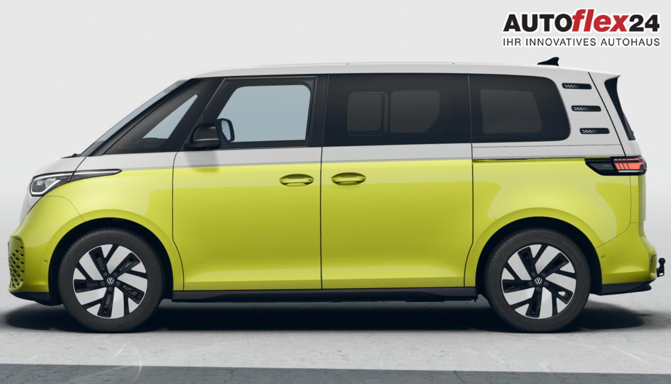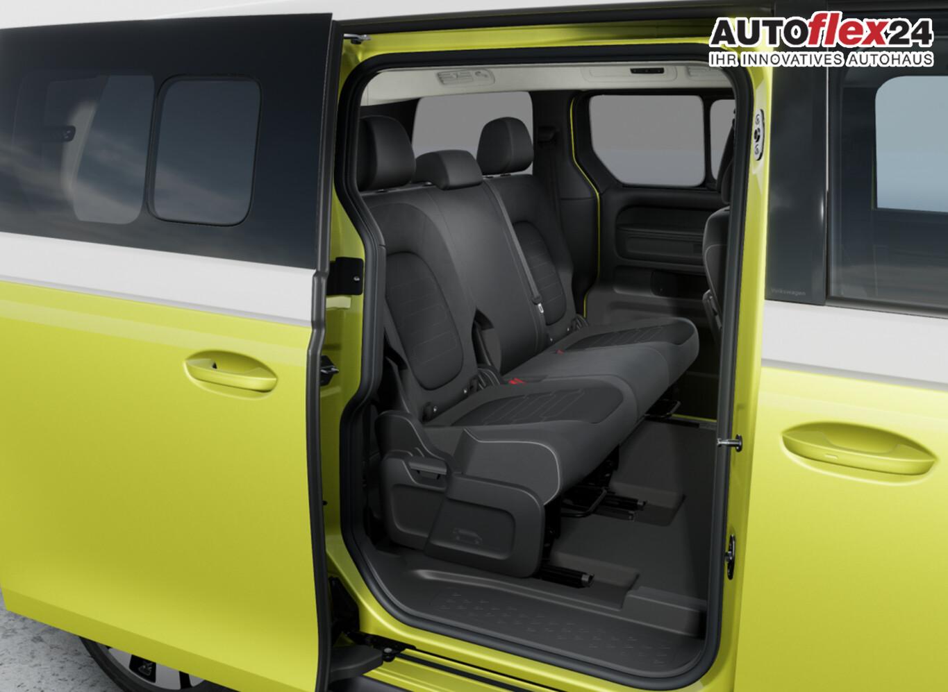 Ausstattungs-Paket: Easy Open & Close Plus (Fenster im Lade-/FG-Raum: - schiebbar, vorn links / Fenster im Lade-/FG-Raum: - schiebbar, vorn rechts / Schließ-/Startsystem Keyless Advanced mit Safesicherung / Umfeldleuchte in Heckklappe / Heckklappe elektr. betätigt Easy Open (öffnen + schliessen, sensorgesteuert) / Schiebetür Lade-/Fahrgastraum links elektr. betätigt Easy Open (sensorgesteuert) / Schiebetür Lade-/Fahrgastraum rechts elektr. betätigt Easy Open (sensorgesteuert)), Interieur-Paket Style Plus (Lenkrad schwarz) (Ambiente-Beleuchtung (30 Farben) / Sitzbezug / Polsterung: Stoff Seaqual / Sitze im Fahrerhaus: Fahrer- und Beifahrersitz Komfort / Sitze im Fahrerhaus: Fahrer- und Beifahrersitz mit Armlehnen beidseitig / Sitze vorn mit Massagefunktion / Sitze im Fahrerhaus: Fahrer- und Beifahrersitz elektr. verstellbar mit Memory, Einstiegshilfe links / Sitze im Fahrerhaus: Fahrer- und Beifahrersitz heizbar / Lenkrad heizbar (Leder) mit Multifunktion), Ausstattungs-Paket: Komfort-Paket Plus (Außenspiegel schwarz lackiert und Türgriffe außen in Wagenfarbe / Gepäckraum-Abtrennung / Trennnetz / Gepäckraumabdeckung / Rollo / Innenspiegel mit Abblendautomatik / Mittelkonsole vorn variabel (ID.Buzz Box) / Multiflex-Board / Scheibenwaschdüsen beheizt / Multimedia-Schnittstelle 2 x USB (Typ C) vorn, USB-Ladeanschluß (Typ C) 1 x vorn, hinten / Klimaanlage Climatronic 3-Zonen inkl. Fondbedienung / Sitze im Fahrerhaus: Fahrer- und Beifahrersitz heizbar / Lenkrad heizbar (Leder) mit Multifunktion / Regensensor), LM-Felgen vorn/hinten: 8x19 / 9x19 (Tilburg, schwarz glanzgedreht), Fahrassistenz-Paket Plus inkl. Travel Assist und Umgebungsansicht inkl. Rückfahrkamera (Schließ-/Startsystem Keyless Advanced mit Safesicherung / Türgriffschalen außen beleuchtet / Rückfahrkamera mit 360° Umgebungsansicht (Area View) / Lenkrad heizbar (Leder) mit Multifunktion / Fahrassistenz-System: Memoryfunktion für Park Assist / Fahrassistenz-System: Parklenkassistent (Park Assist) inkl. Einparkhilfe vorn und hinten / Fahrassistenz-Paket: Travel Assist, Emergency Assist und Lane Assist / Diebstahl-Warnanlage + Innenraumüberwachung / Abschleppschutz + Back-up-Horn), Ausstattungs-Paket: Design (Leuchtweitenregelung automatisch und Kurvenlicht dynamisch / Lichtleiste zwischen Scheinwerfer / Pedale Edelstahl / Fahrassistenz-System: Dynamische Fernlichtregulierung (Dynamic Light Assist) / Heckleuchten LED, Blinkleuchten dynamisch / Matrix-LED-Scheinwerfer (IQ.Light)), Heizungs-/Klimaanlage: Wärmepumpe, Anhängerkupplung klappbar (elektr. Entriegelung), Ladekabel mit Schukostecker (10 A, Mode 2), Ladekabel mit Typ 2-Stecker (32 A, Mode 3), Fahrassistenz-System: Parklenkassistent (Park Assist Pro) inkl. Einparkhilfe in Verbindung mit Onlinedienste, Diebstahl-Warnanlage + Innenraumüberwachung / Abschleppschutz, Elektron. Stabilitäts-Programm (ESP), Garantieverlängerung: 3 Jahre oder 100.000 km, Isofix-Aufnahmen für Kindersitz am Beifahrersitz, Navigation in Verbindung mit dem Smartphone (über Apple Carplay / Android Auto /...), Radschrauben mit Diebstahlsicherung, Scheibenwischer mit Intervallschaltung, Sommerreifen hinten 255/50 R19, Sommerreifen vorn 235/55 R19, Akustischer Fußgängerschutz, Außensound (e-sound), Audiosystem Ready 2 Discover (Touchscreen-Farbdisplay 12,9 Zoll), Audiosystem: Vorbereitung für spätere Freischaltung Navigationsfunktion Discover Pro, Außenspiegel konvex, links und rechts, Bidirektionales Laden (DC), Bodenbelag: Teppich verstärkt, DC / DC Wandler 3 kW, Elektromotor 210 kW (cont. 89 kW), Fahrassistenz-System: Ausweich-Assistent und Abbiege-Assistent, Funkschlüssel (2), Fußraumbeleuchtung vorn und hinten, Heckklappe mit Verglasung, Heckscheibenwischer mit Intervallschaltung, HV-Batterie 79 kWh netto, Innenausstattung: Bedienelemente, Lenkrad und Einfassung Instrumente schwarz, Innenleuchten im Lade-/FG-Raum: LED (Gepäckraum), Insassen-Schutzsystem proaktiv, Intelligent Speed Assist inkl. Geschwindigkeitsbegrenzer, Karosserie/Aufbau: Bus, Lautsprecher (9), Linkslenker, Mobile Online Dienste App-Connect inkl. App-Connect Wireless (Apple CarPlay, Android Auto), Nichtraucher-Paket, Radioempfang digital (DAB+), Radstand 2989 mm, Radstand kurz, Schnellladevorrichtung (CCS-Ladedose), Sitzausstattung: 5-Sitzer, Sitze im Lade-/FG-Raum: 1.Reihe, 3er-Sitzbank, geteilt/klappbar, Sonnenblenden mit Spiegel (beleuchtet), Steckdose (12V-Anschluß) im Laderaum, Stoßfänger in Wagenfarbe, Umfeldbeleuchtung seitlich mit Projektionsfunktion, Vorbereitung für Alkohol-Wegfahrsperre (Alcolock), Vorbereitung Onlinedienste We Connect (Plus) oder VW Connect (Plus) und Online-Update-Fähigkeit, Warnanlage für Sicherheitsgurte vorn und hinten, Zul. Gesamtgewicht 3,00 t, Mobiltelefon Schnittstelle Bluetooth, Mobiltelefon Schnittstelle mit kabelloser Ladefunktion, Anti-Blockier-System (ABS), Antriebsart: Heckantrieb, Getriebe für Elektrofahrzeug, Airbag Fahrer-/Beifahrerseite, Beifahrerairbag abschaltbar, Isofix-Aufnahmen für Kindersitz an Rücksitz, Seitenairbag, Kopfairbag und Center-Airbag vorn, Wärmeschutzverglasung seitlich / hinten, Fahrassistenz-System: Autom. Distanzregelung (ACC inkl. Stop&Go-Funktion), Fahrassistenz-System: Verkehrszeichenerkennung, Multifunktionskamera / Frontkamera, Notrufsystem, Servolenkung elektro-mechanisch, geschwindigkeitsabhängig, Außenspiegel elektr. verstell-, heiz- und anklappbar mit Spiegelabsenkung, Fahrassistenz-System: Ablenkungs- und Müdigkeitserkennung, Fahrassistenz-System: Notbrems-Assistent (Front Assist) inkl. Fußgänger- und Fahrraderkennung, Fahrassistenz-System: Spurhalteassistent (Lane Assist), Fahrassistenz-System: Spurwechselassistent (Side Assist) mit Auspark-Assistent und Ausstiegswarnung, Reifenkontroll-Anzeige