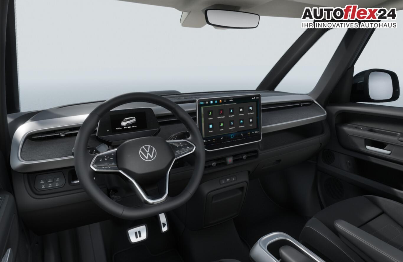Ausstattungs-Paket: Easy Open & Close Plus (Fenster im Lade-/FG-Raum: - schiebbar, vorn links / Fenster im Lade-/FG-Raum: - schiebbar, vorn rechts / Schließ-/Startsystem Keyless Advanced mit Safesicherung / Umfeldleuchte in Heckklappe / Heckklappe elektr. betätigt Easy Open (öffnen + schliessen, sensorgesteuert) / Schiebetür Lade-/Fahrgastraum links elektr. betätigt Easy Open (sensorgesteuert) / Schiebetür Lade-/Fahrgastraum rechts elektr. betätigt Easy Open (sensorgesteuert)), Interieur-Paket Style Plus (Lenkrad schwarz) (Ambiente-Beleuchtung (30 Farben) / Sitzbezug / Polsterung: Stoff Seaqual / Sitze im Fahrerhaus: Fahrer- und Beifahrersitz Komfort / Sitze im Fahrerhaus: Fahrer- und Beifahrersitz mit Armlehnen beidseitig / Sitze vorn mit Massagefunktion / Sitze im Fahrerhaus: Fahrer- und Beifahrersitz elektr. verstellbar mit Memory, Einstiegshilfe links / Sitze im Fahrerhaus: Fahrer- und Beifahrersitz heizbar / Lenkrad heizbar (Leder) mit Multifunktion), Ausstattungs-Paket: Komfort-Paket Plus (Außenspiegel schwarz lackiert und Türgriffe außen in Wagenfarbe / Gepäckraum-Abtrennung / Trennnetz / Gepäckraumabdeckung / Rollo / Innenspiegel mit Abblendautomatik / Mittelkonsole vorn variabel (ID.Buzz Box) / Multiflex-Board / Scheibenwaschdüsen beheizt / Multimedia-Schnittstelle 2 x USB (Typ C) vorn, USB-Ladeanschluß (Typ C) 1 x vorn, hinten / Klimaanlage Climatronic 3-Zonen inkl. Fondbedienung / Sitze im Fahrerhaus: Fahrer- und Beifahrersitz heizbar / Lenkrad heizbar (Leder) mit Multifunktion / Regensensor), LM-Felgen vorn/hinten: 8x19 / 9x19 (Tilburg, schwarz glanzgedreht), Fahrassistenz-Paket Plus inkl. Travel Assist und Umgebungsansicht inkl. Rückfahrkamera (Schließ-/Startsystem Keyless Advanced mit Safesicherung / Türgriffschalen außen beleuchtet / Rückfahrkamera mit 360° Umgebungsansicht (Area View) / Lenkrad heizbar (Leder) mit Multifunktion / Fahrassistenz-System: Memoryfunktion für Park Assist / Fahrassistenz-System: Parklenkassistent (Park Assist) inkl. Einparkhilfe vorn und hinten / Fahrassistenz-Paket: Travel Assist, Emergency Assist und Lane Assist / Diebstahl-Warnanlage + Innenraumüberwachung / Abschleppschutz + Back-up-Horn), Ausstattungs-Paket: Design (Leuchtweitenregelung automatisch und Kurvenlicht dynamisch / Lichtleiste zwischen Scheinwerfer / Pedale Edelstahl / Fahrassistenz-System: Dynamische Fernlichtregulierung (Dynamic Light Assist) / Heckleuchten LED, Blinkleuchten dynamisch / Matrix-LED-Scheinwerfer (IQ.Light)), Sitz-Paket: 7-Sitzer (Sitzausstattung: 7-Sitzer / Sitze im Lade-/FG-Raum: 1.Reihe, 3er-Sitzbank, geteilt/klappbar + 2.Reihe, 2 Einzelsitze, herausnehmbar / Zul. Gesamtgewicht 3,34 t / Klimaanlage 2-Zonen mit 2 Zuheizer), Heizungs-/Klimaanlage: Wärmepumpe, Ladekabel mit Schukostecker (10 A, Mode 2), Ladekabel mit Typ 2-Stecker (32 A, Mode 3), Fahrassistenz-System: Parklenkassistent (Park Assist Pro) inkl. Einparkhilfe in Verbindung mit Onlinedienste, Diebstahl-Warnanlage + Innenraumüberwachung / Abschleppschutz, Elektron. Stabilitäts-Programm (ESP), Garantieverlängerung: 3 Jahre oder 100.000 km, Isofix-Aufnahmen für Kindersitz am Beifahrersitz, Navigation in Verbindung mit dem Smartphone (über Apple Carplay / Android Auto /...), Radschrauben mit Diebstahlsicherung, Scheibenwischer mit Intervallschaltung, Sommerreifen hinten 255/50 R19, Sommerreifen vorn 235/55 R19, Akustischer Fußgängerschutz, Außensound (e-sound), Audiosystem Ready 2 Discover (Touchscreen-Farbdisplay 12,9 Zoll), Audiosystem: Vorbereitung für spätere Freischaltung Navigationsfunktion Discover Pro, Außenspiegel konvex, links und rechts, Bidirektionales Laden (DC), Bodenbelag: Teppich verstärkt, DC / DC Wandler 3 kW, Elektromotor 210 kW (cont. 89 kW), Fahrassistenz-System: Ausweich-Assistent und Abbiege-Assistent, Funkschlüssel (2), Fußraumbeleuchtung vorn und hinten, Heckklappe mit Verglasung, Heckscheibenwischer mit Intervallschaltung, HV-Batterie 86 kWh netto, Innenausstattung: Bedienelemente, Lenkrad und Einfassung Instrumente schwarz, Innenleuchten im Lade-/FG-Raum: LED (Gepäckraum), Insassen-Schutzsystem proaktiv, Intelligent Speed Assist inkl. Geschwindigkeitsbegrenzer, Karosserie/Aufbau: Bus, Lautsprecher (9), Linkslenker, Mobile Online Dienste App-Connect inkl. App-Connect Wireless (Apple CarPlay, Android Auto), Nichtraucher-Paket, Radioempfang digital (DAB+), Radstand 3239 mm, Radstand lang, Schnellladevorrichtung (CCS-Ladedose), Sonnenblenden mit Spiegel (beleuchtet), Steckdose (12V-Anschluß) im Laderaum, Stoßfänger in Wagenfarbe, Umfeldbeleuchtung seitlich mit Projektionsfunktion, Vorbereitung für Alkohol-Wegfahrsperre (Alcolock), Vorbereitung Onlinedienste We Connect (Plus) oder VW Connect (Plus) und Online-Update-Fähigkeit, Warnanlage für Sicherheitsgurte vorn und hinten, Mobiltelefon Schnittstelle Bluetooth, Mobiltelefon Schnittstelle mit kabelloser Ladefunktion, Anti-Blockier-System (ABS), Antriebsart: Heckantrieb, Getriebe für Elektrofahrzeug, Airbag Fahrer-/Beifahrerseite, Beifahrerairbag abschaltbar, Isofix-Aufnahmen für Kindersitz an Rücksitz, Seitenairbag, Kopfairbag und Center-Airbag vorn, Wärmeschutzverglasung seitlich / hinten, Fahrassistenz-System: Autom. Distanzregelung (ACC inkl. Stop&Go-Funktion), Fahrassistenz-System: Verkehrszeichenerkennung, Multifunktionskamera / Frontkamera, Notrufsystem, Servolenkung elektro-mechanisch, geschwindigkeitsabhängig, Außenspiegel elektr. verstell-, heiz- und anklappbar mit Spiegelabsenkung, Fahrassistenz-System: Ablenkungs- und Müdigkeitserkennung, Fahrassistenz-System: Notbrems-Assistent (Front Assist) inkl. Fußgänger- und Fahrraderkennung, Fahrassistenz-System: Spurhalteassistent (Lane Assist), Fahrassistenz-System: Spurwechselassistent (Side Assist) mit Auspark-Assistent und Ausstiegswarnung, Reifenkontroll-Anzeige