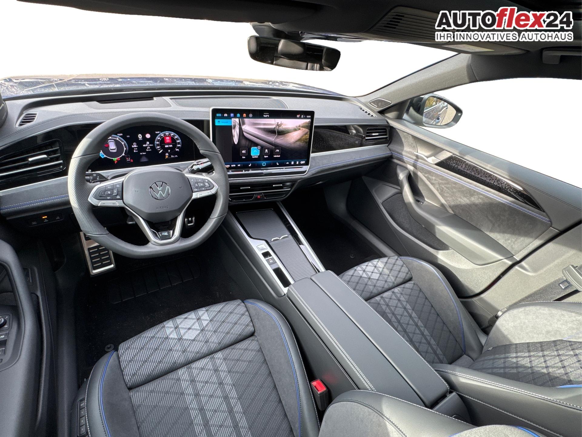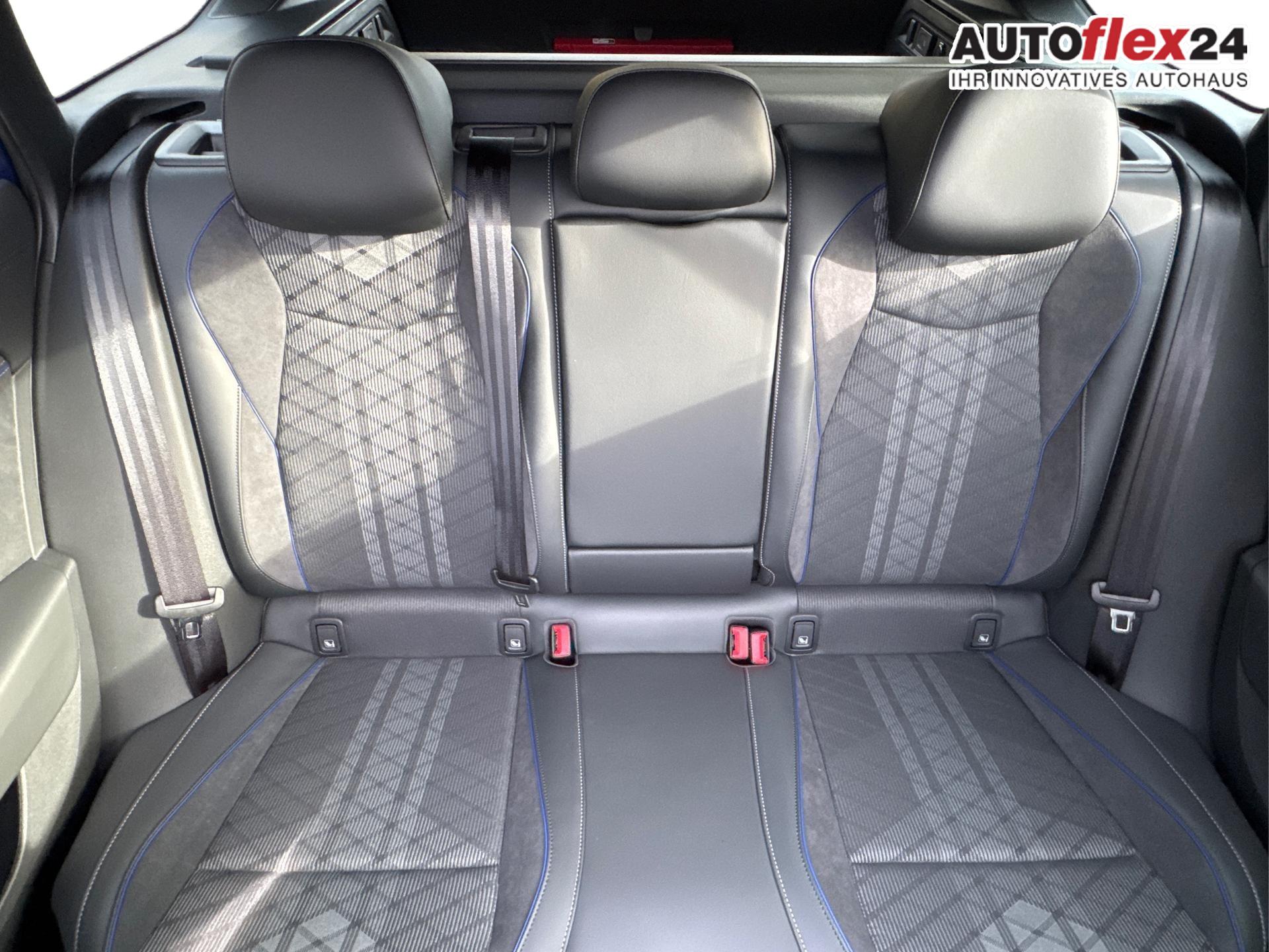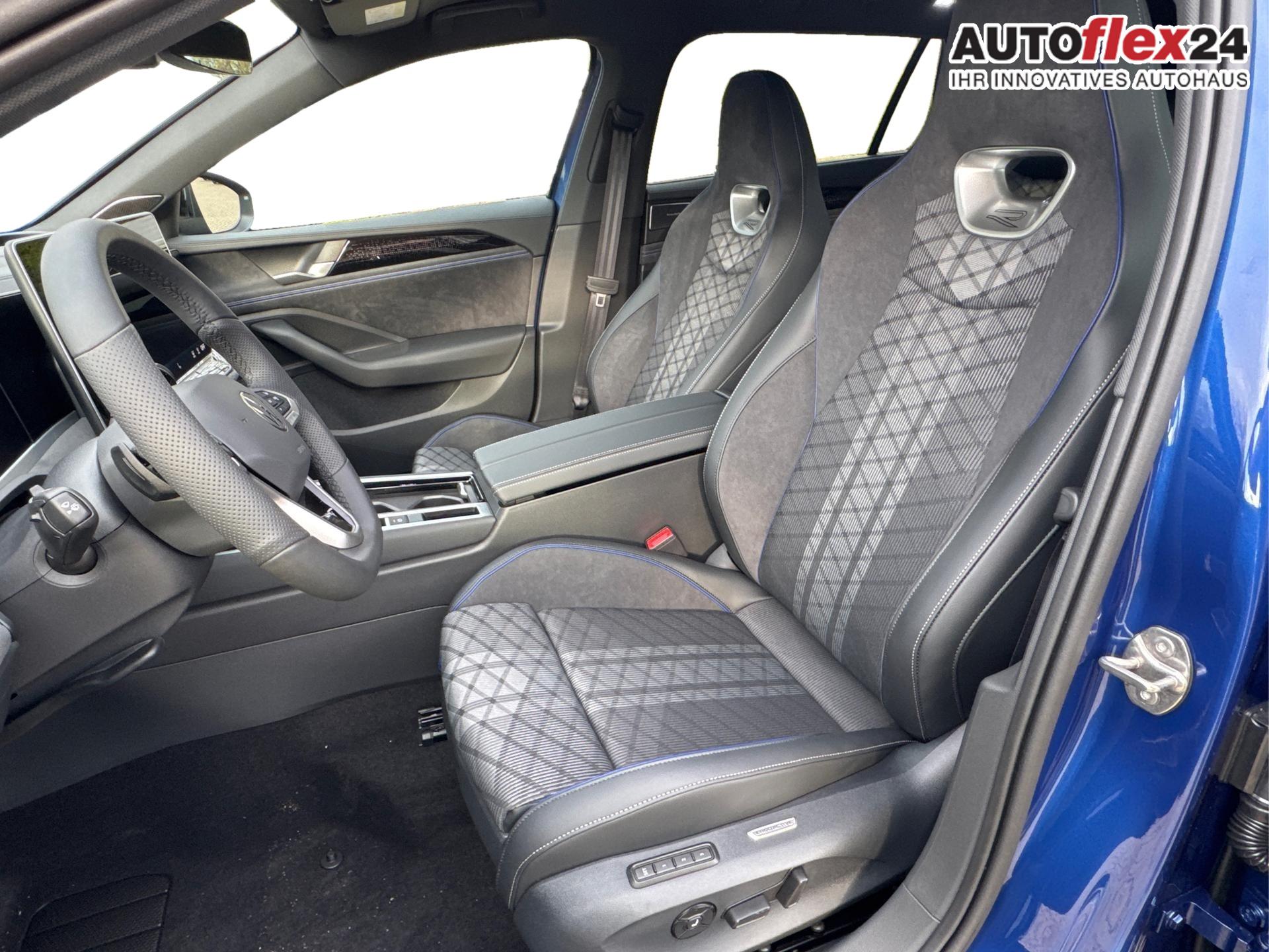 Innenausstattung R-Line Sportsitze in Schwarz mit blauer Kontur, Sitzmittelbahnen der Vordersitze und der äußeren Rücksitzplätze in Stoff, Sitzwangen in Art Velours