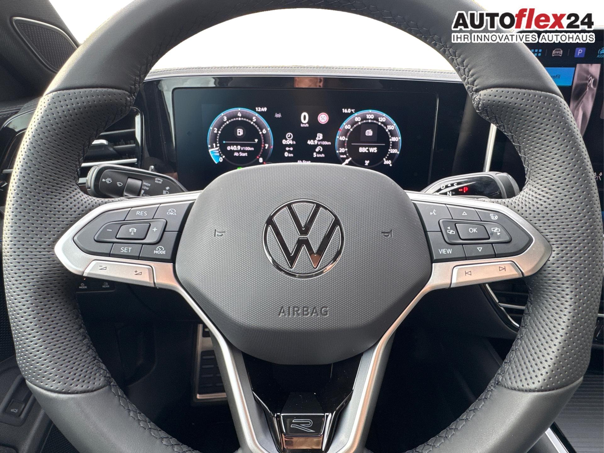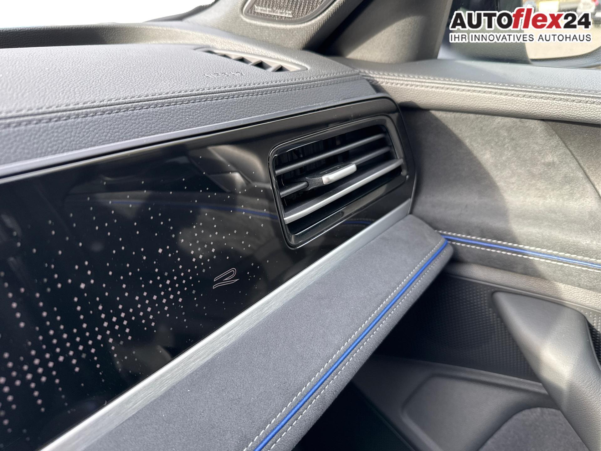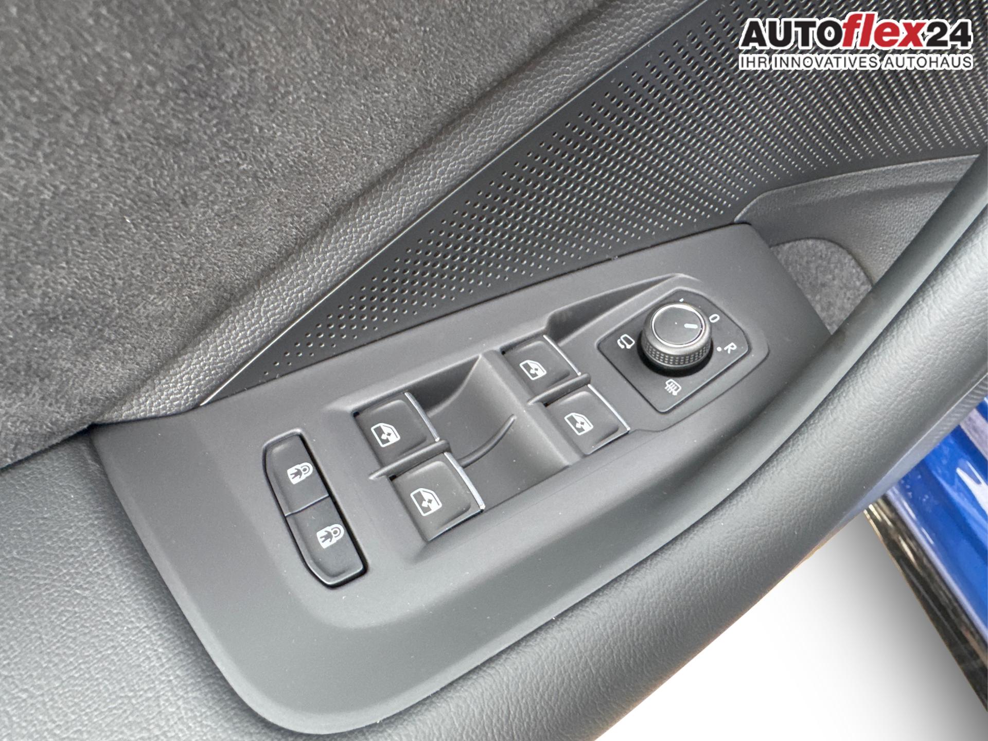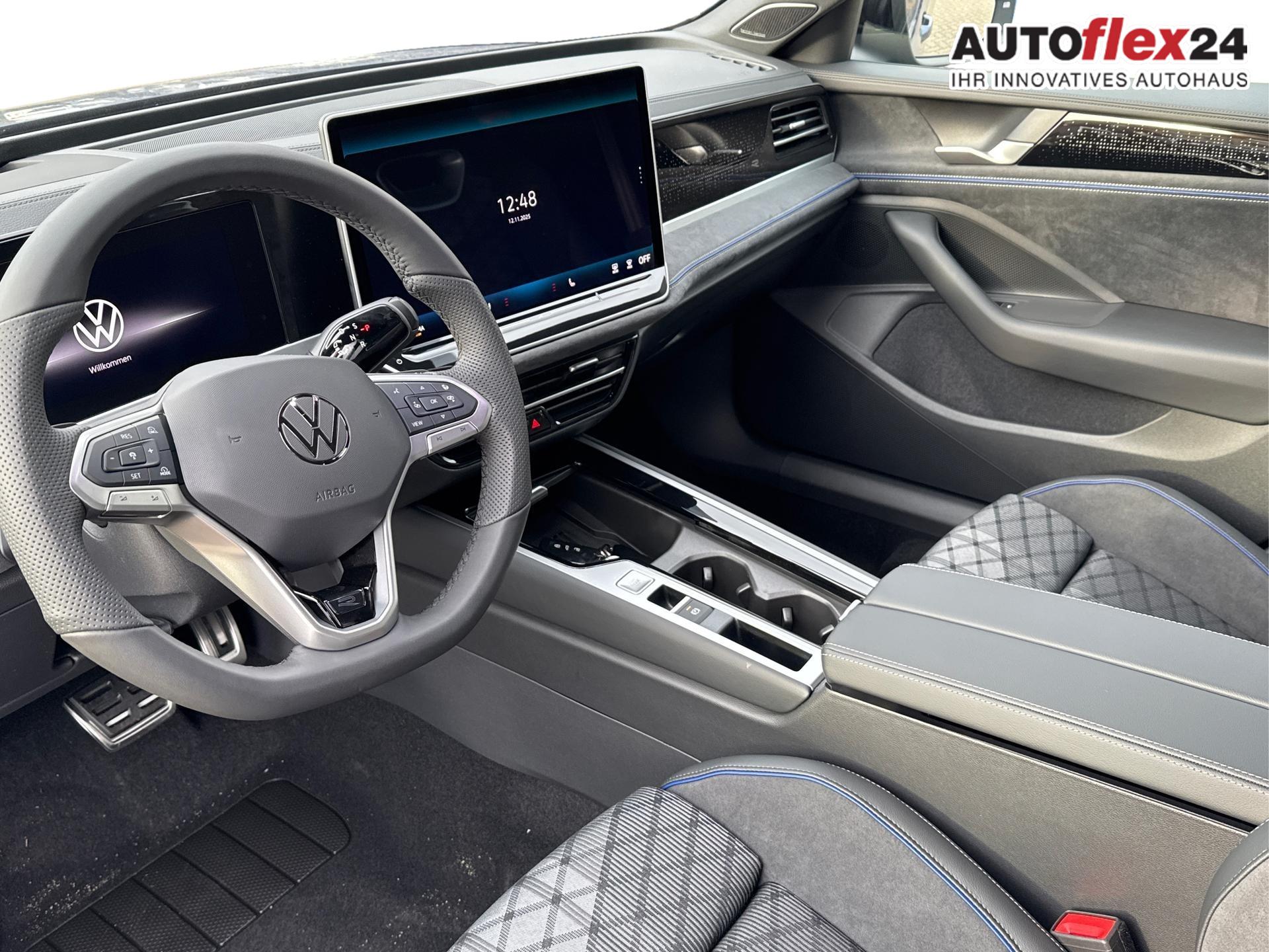 Innenausstattung R-Line Sportsitze in Schwarz mit blauer Kontur, Sitzmittelbahnen der Vordersitze und der äußeren Rücksitzplätze in Stoff, Sitzwangen in Art Velours